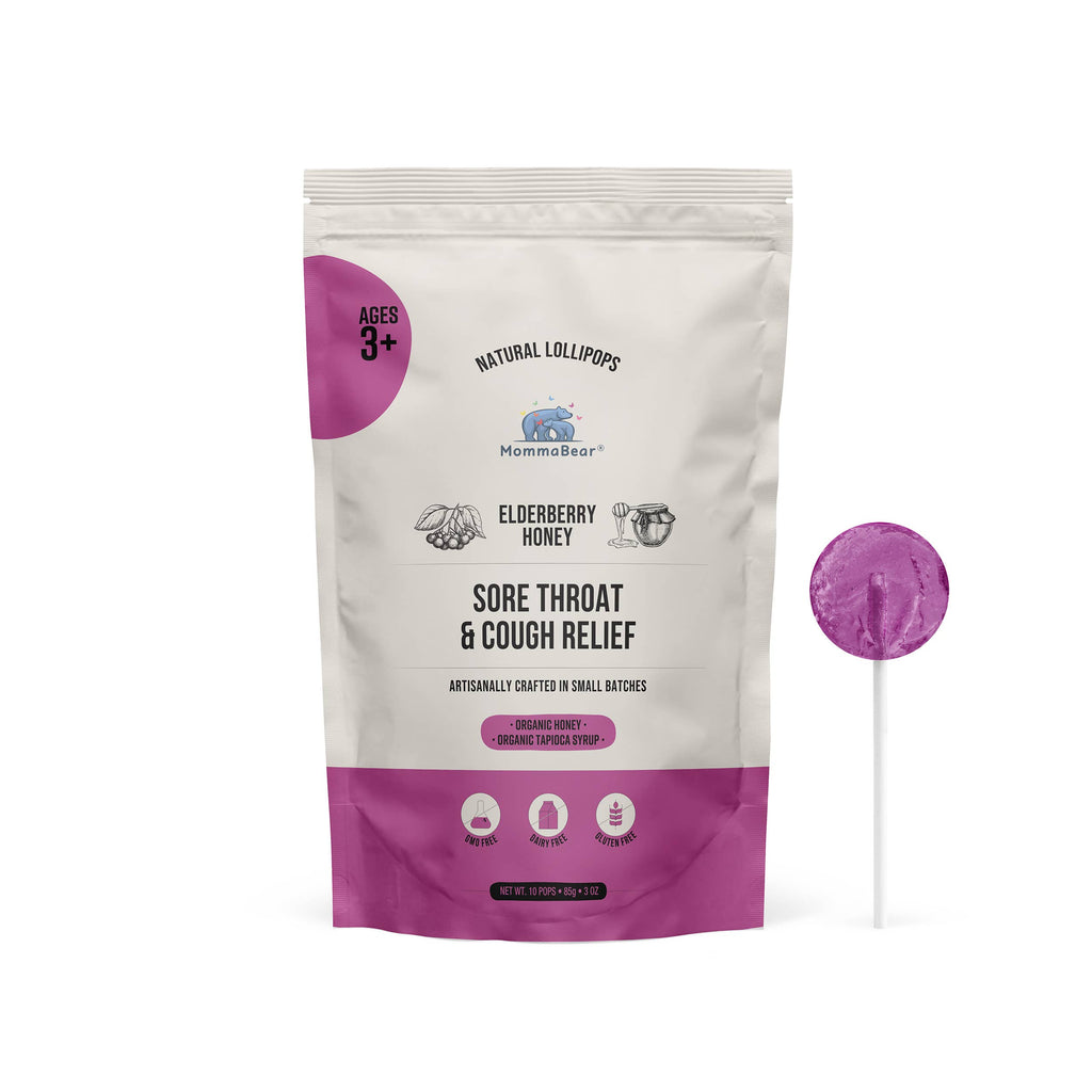 Sore Throat & Cough Aid Lollipops; Honey, Elderberry- 10ct