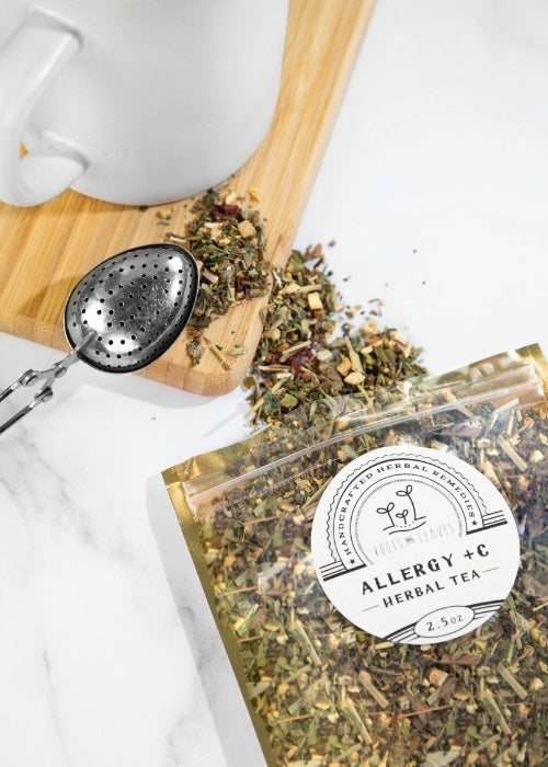 Allergies can wreak havoc and make us truly miserable! Those that suffer with them live this truth and know the misery first hand. Lucky for allergy-sufferers, there are some natural remedies that can help alleviate some of the suffering. Years ago, before I learned about the power of herbs, I personally use to take a benadryl every night to help fight my allergies until I read about benadryl contributing to alzheimer's! No thanks! This herbal tea blend for allergies is one of the most effective remedies I have found. As an herbalist I take great pride in my recipes being balanced, tasty and more importantly- effective. This tea is very mild tasting with a hint of cinnamon and peppermint at the finish. I highly suggest adding some LOCAL raw honey to this tea for an even bigger allergy fighting punch. It also tastes delicious with a tbsp of our elderberry and honey tonic added in, the flavors blend beautifully and customers have told me it makes it taste like "chai" tea when mixed with elderberry.