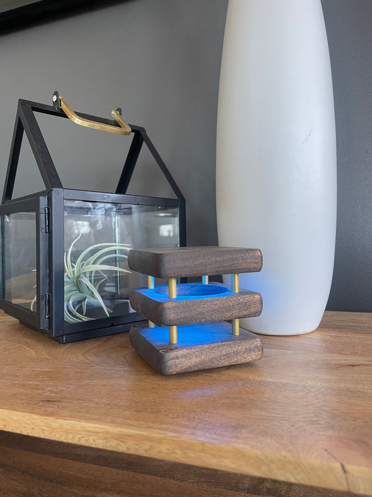 The Mini Mid-Century Design Friendship Lamp captures the charm of mid-century aesthetics in a smaller, more compact form. Handcrafted in knotty alder wood with brushed aluminum accents, this lamp fits beautifully in tight spaces while still delivering the emotional connection you expect from a Friendship Lamp. With a simple touch, it sends light and love across any distance.