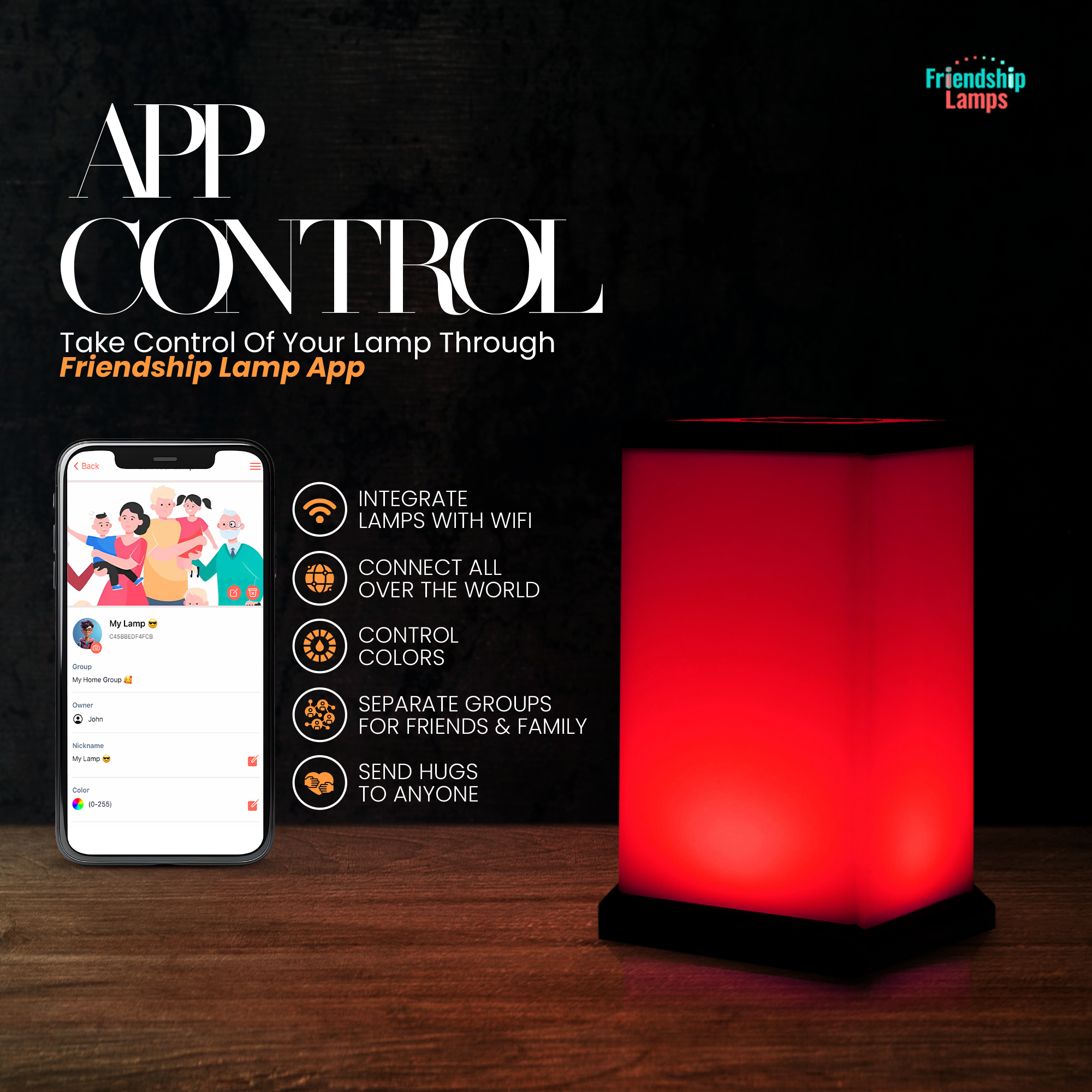- Use the app to pair your lamp into a group with family, friends, or loved ones (unlimited number of lamps).