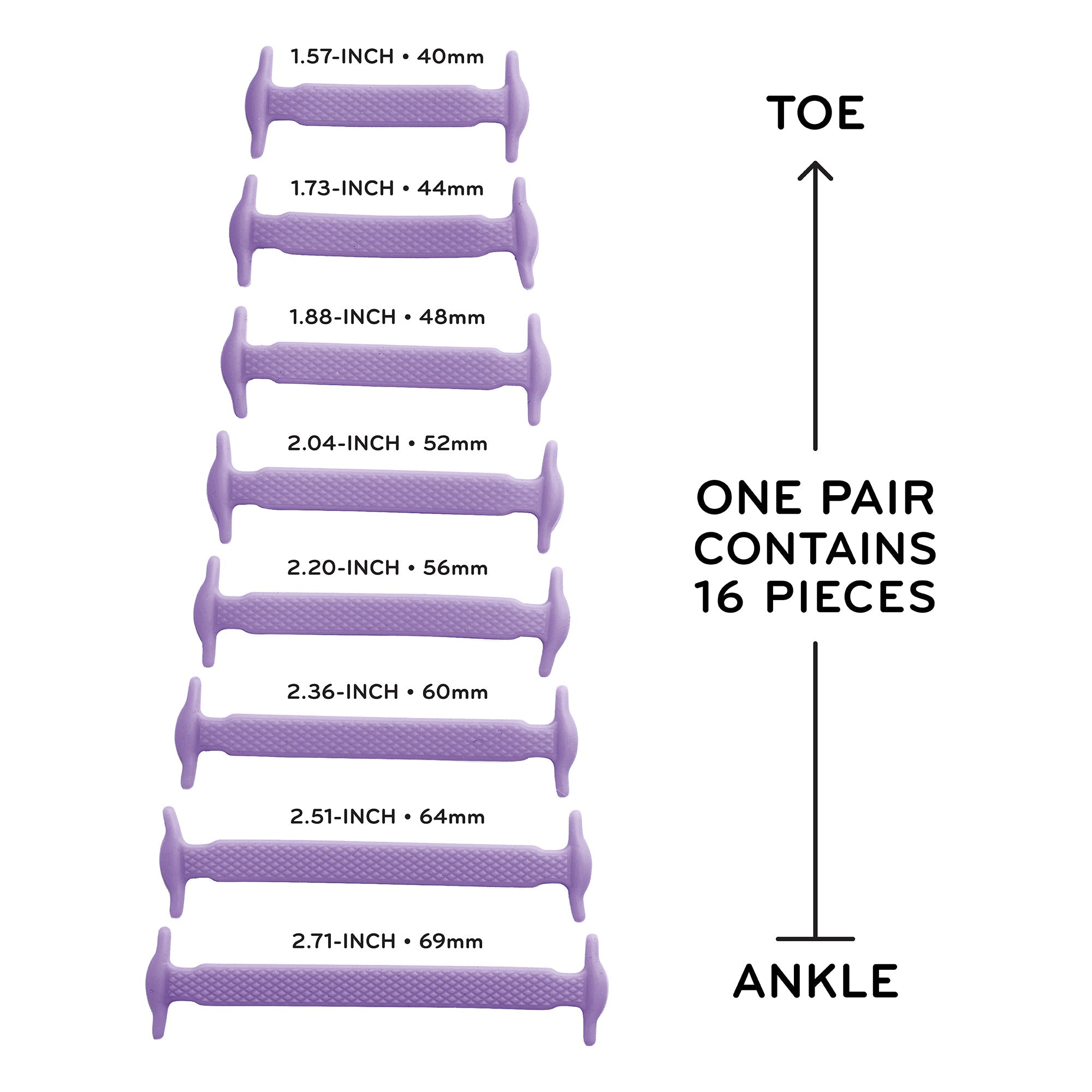 The straps come in varying widths to follow the shape of your shoe seamlessly. Simply strap in the stretchy laces through the eyelets on your shoes to experience a world without knots!