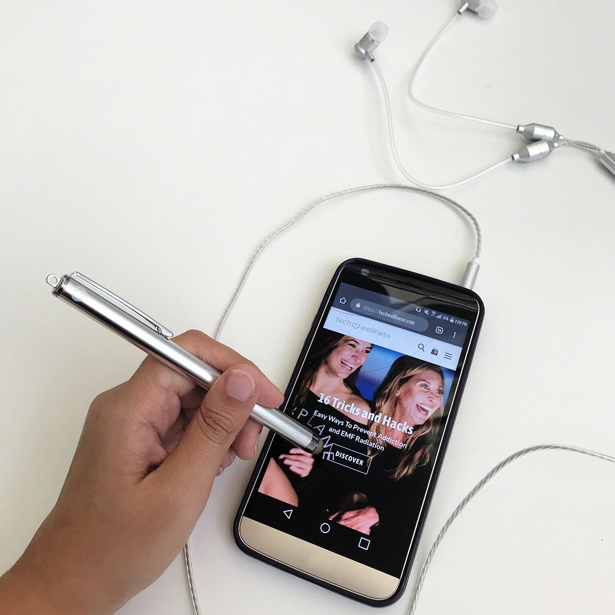 We recommend 8-12 inches away for EMF exposure to drop by 80%. The few inches you'll get away as you use this stylus pen to text, email or scroll is a fun and healthy idea. Bonus: A Stylus Pen keeps your screen clean and pretty too!