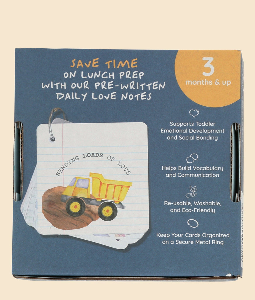 Save time and spread love with our Lunchbox Love Notes! Our set of 50+ washable cards features cute illustrations, puns, and humor, perfect for delighting your child each day. It's another way to say, "I'm thinking of you" while they are at daycare or school. ❤️