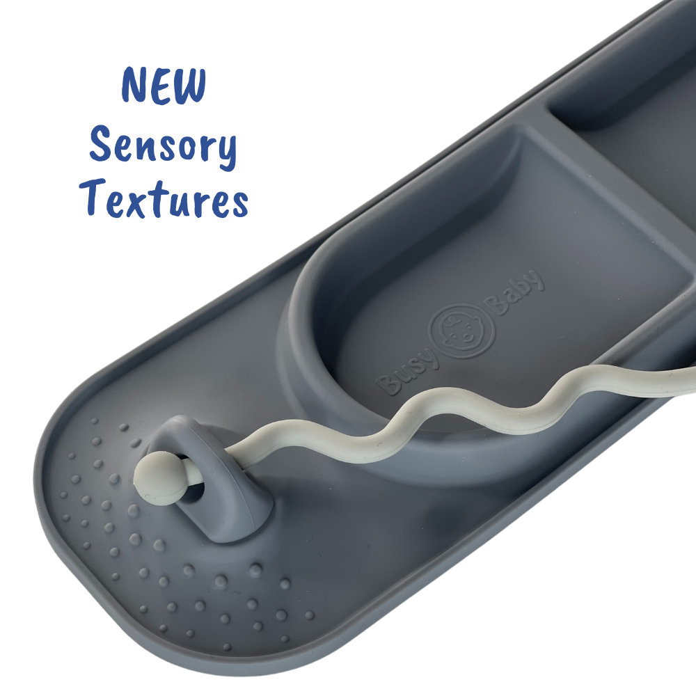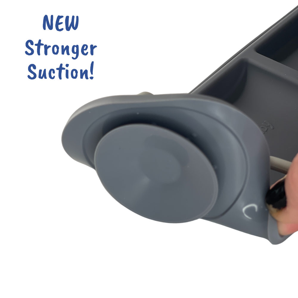 The Mini version of our award-winning Silicone Placemat makes it perfect for smaller trays or travel.    NEW AND IMPROVED suction and sensory features. It includes three suction cups to keep the mat in place on smooth surfaces or to wrap around stroller handles, shopping carts and more.   2 tethers (toy straps) keep utensils, toys, and teethers within reach and off the floor!  Use it at home or on-the-go with the convenient travel wet bag.  *Will not work with Lalo or Stokke Tripp Trapp high chairs.