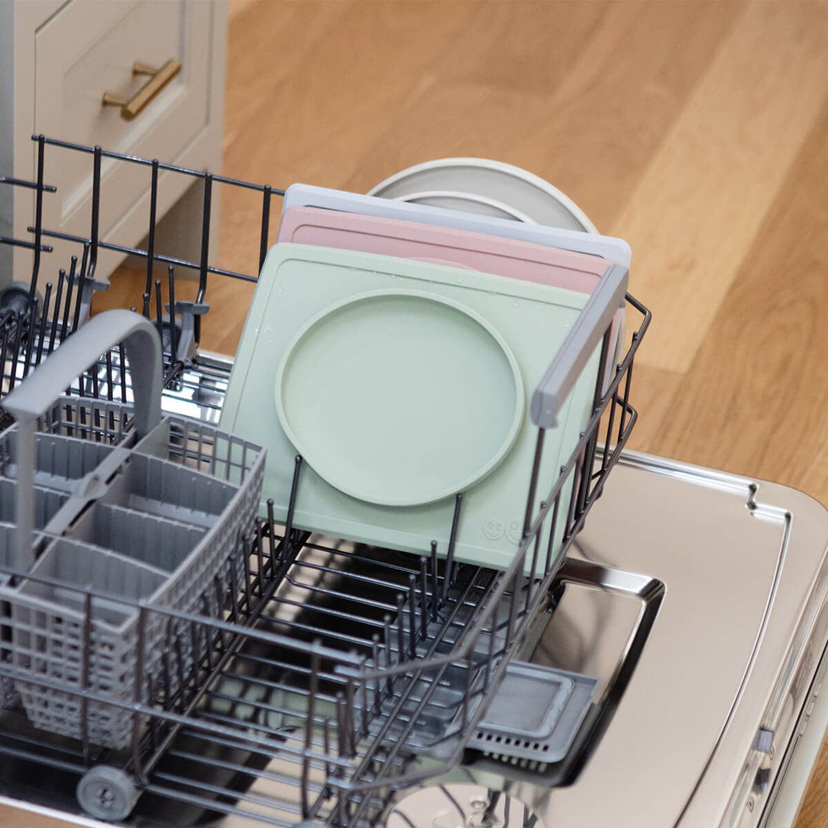 The Tiny Plate provides an open plate design to promote self-feeding + utensil use. The plate supports the traditional method of feeding (purées), as well as the baby-led weaning method of feeding (baby-led strips of food).