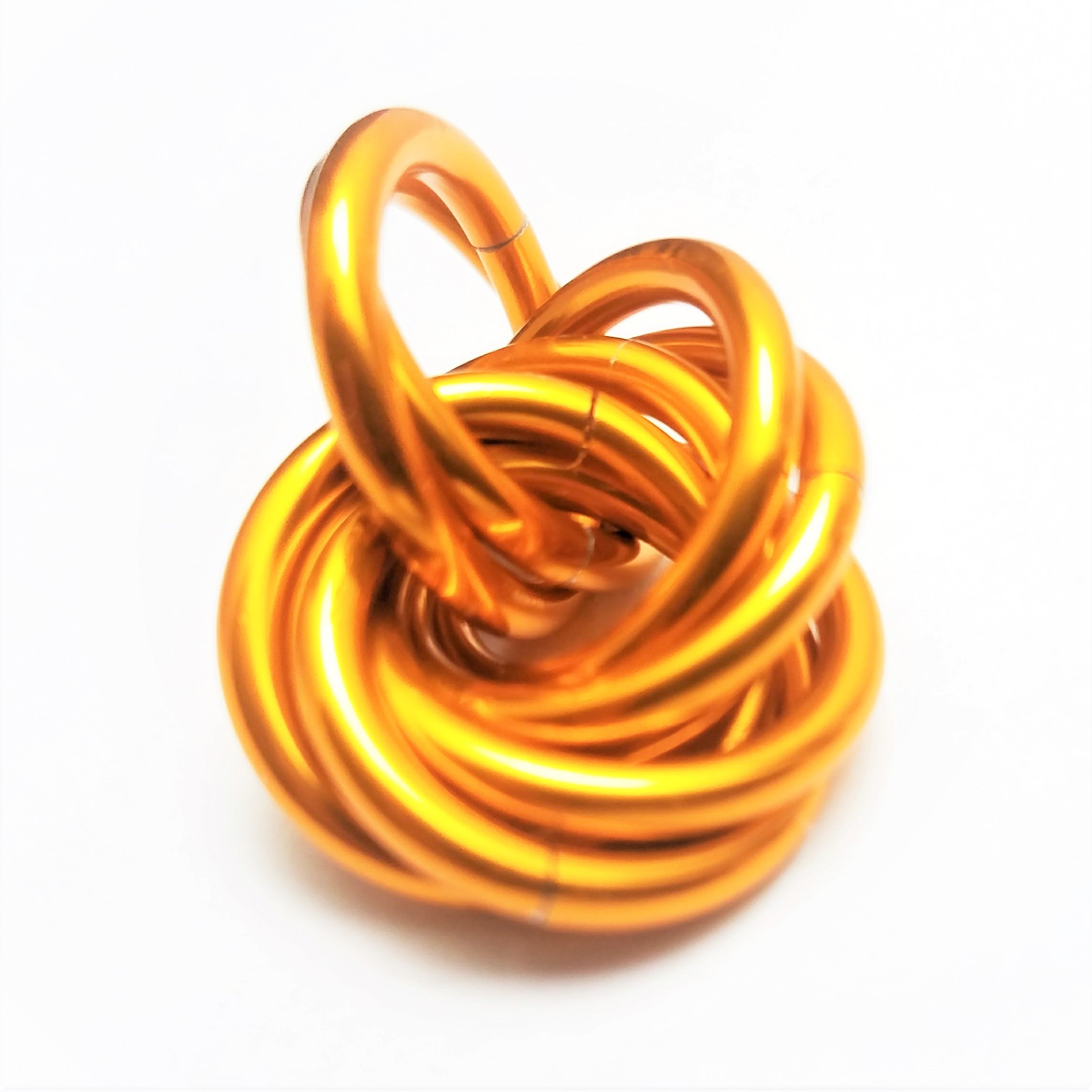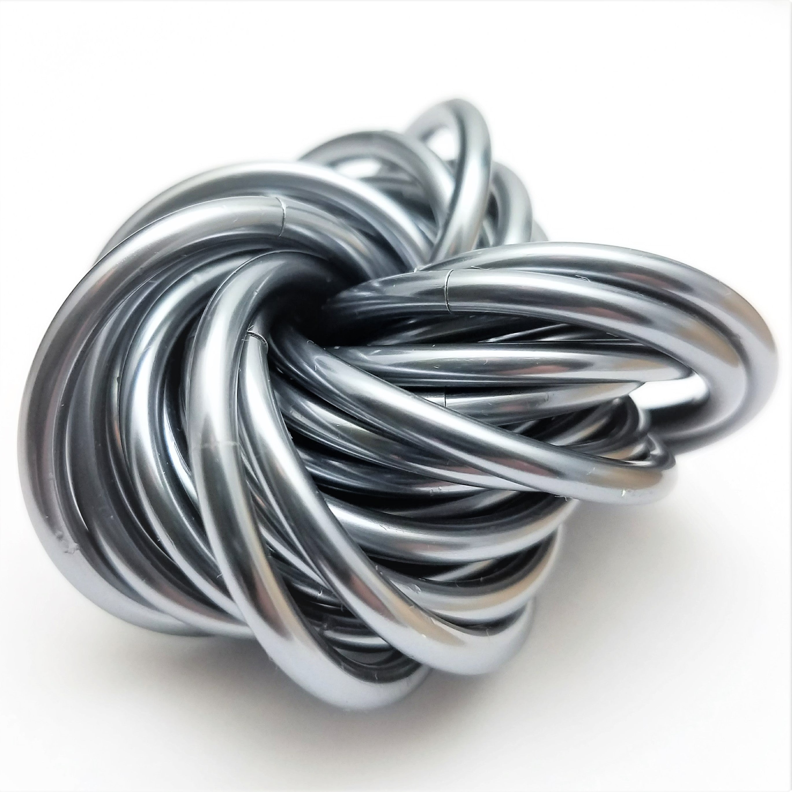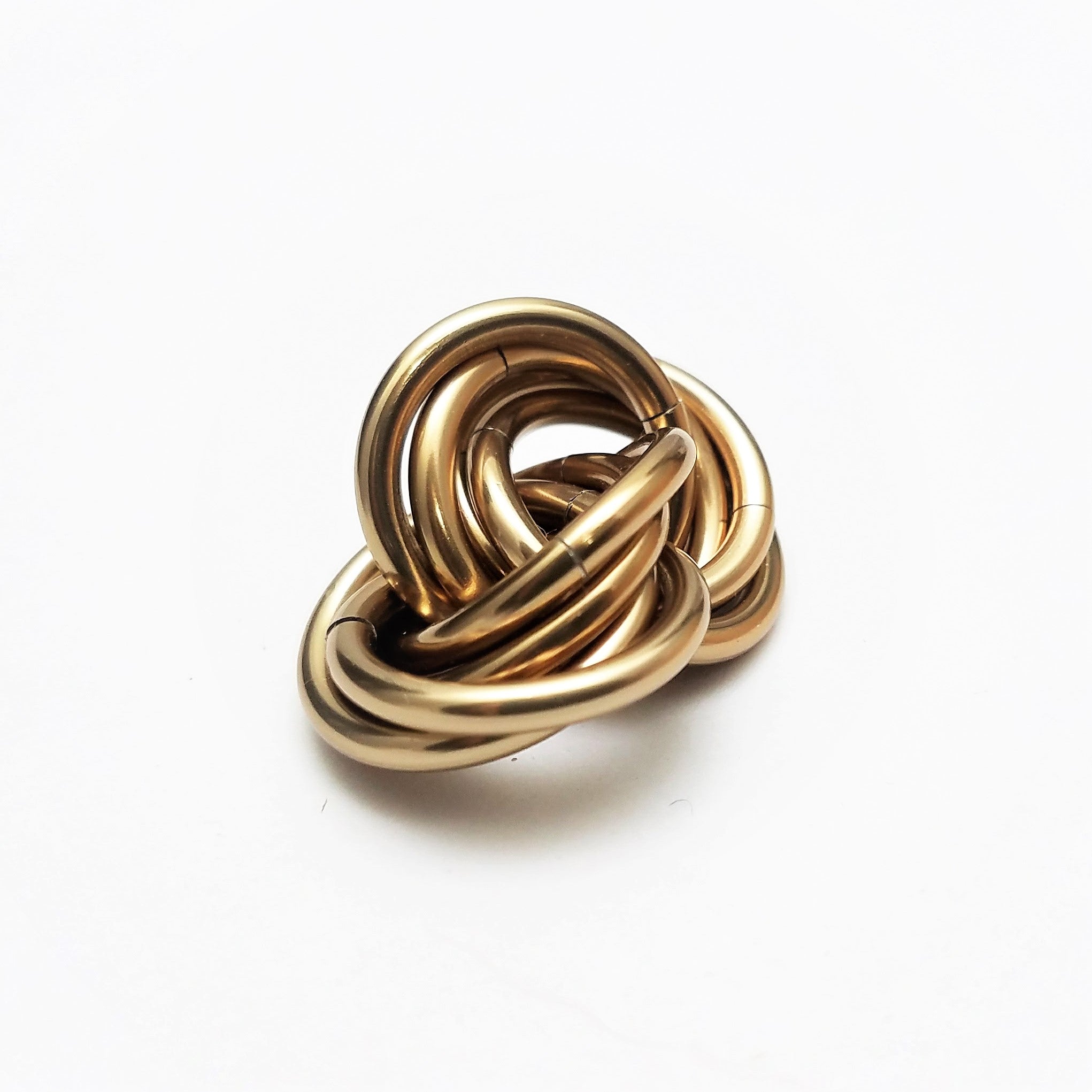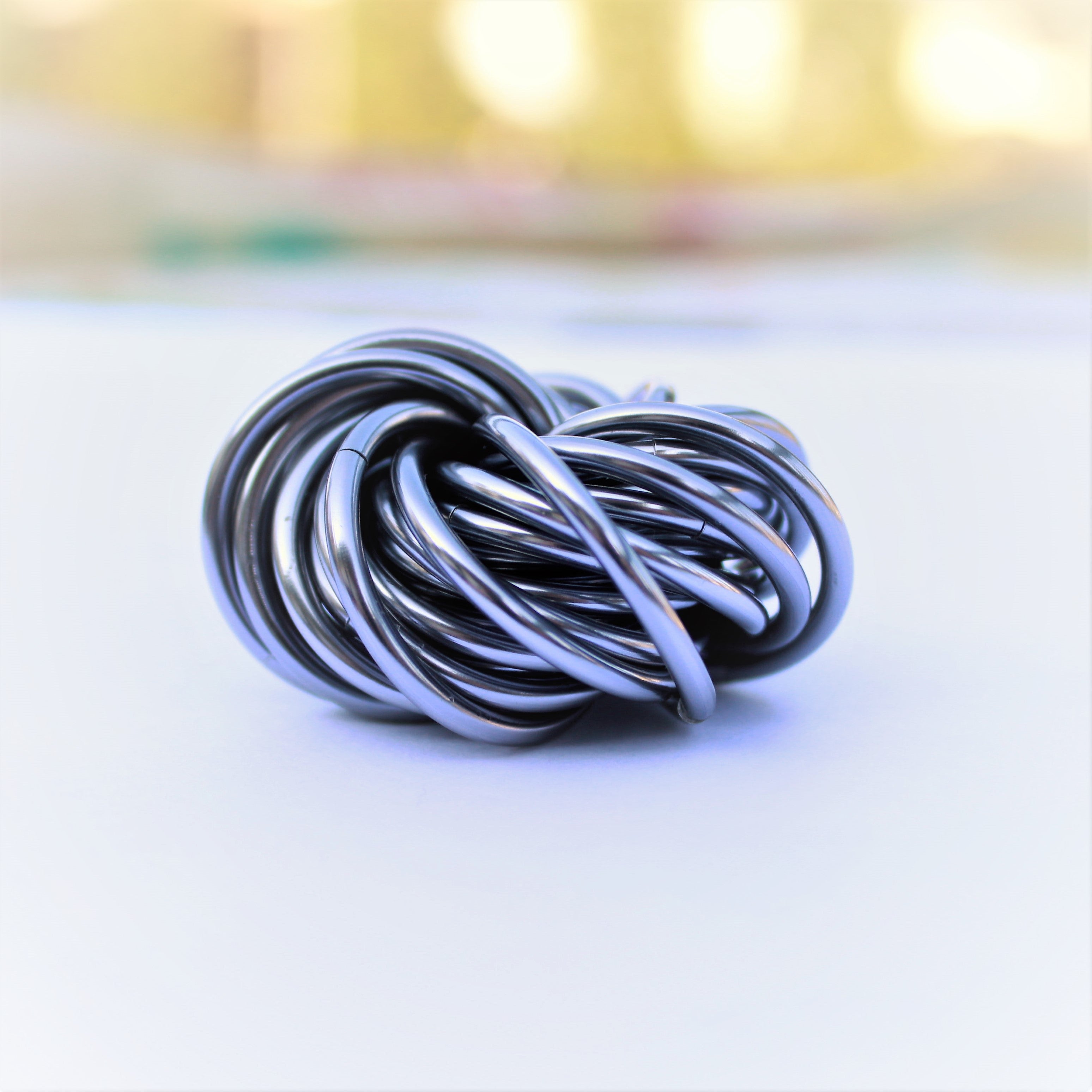 Rings are woven together so that you can rotate the rings through and spin this in your hand forever. The design cycles back in on itself so it goes on forever!