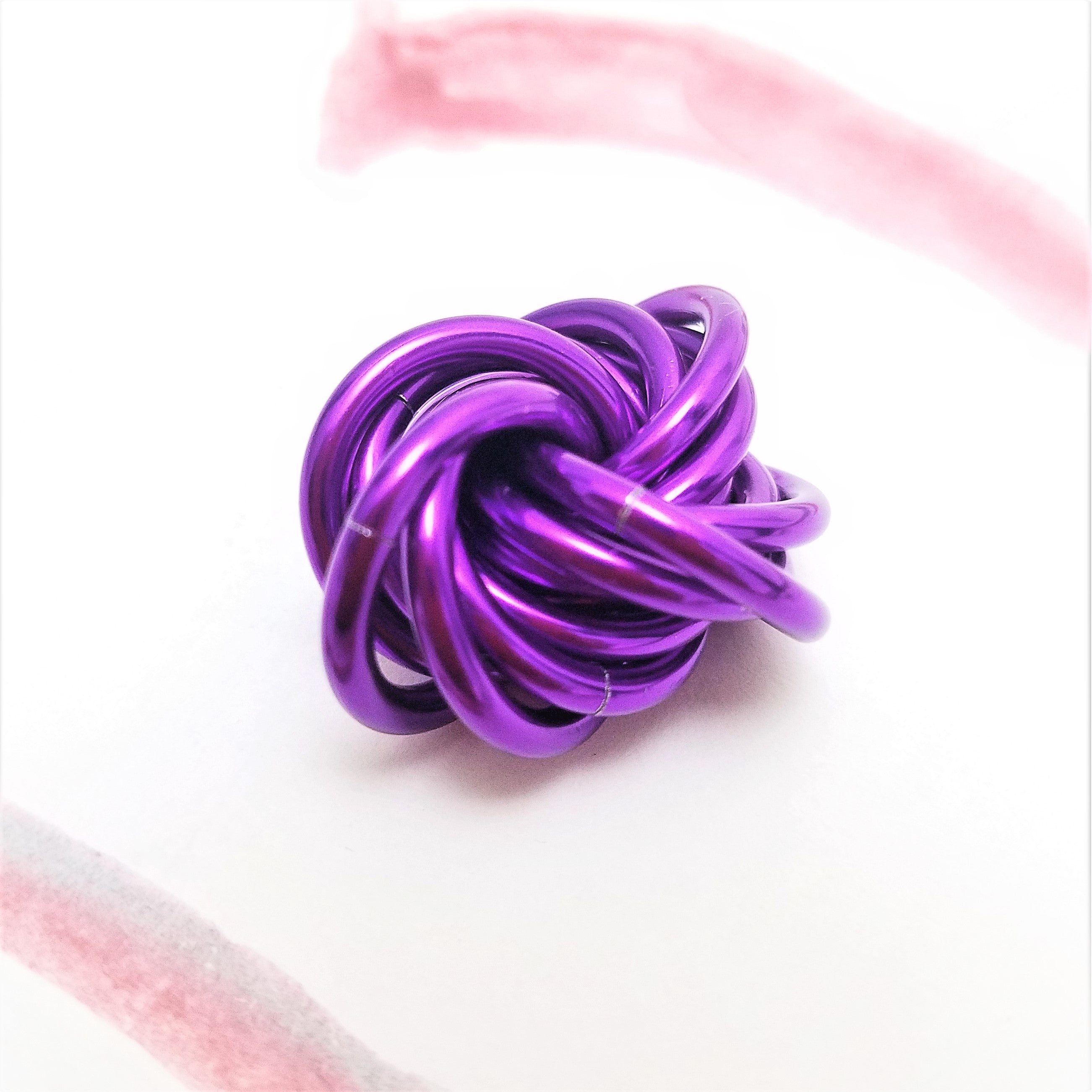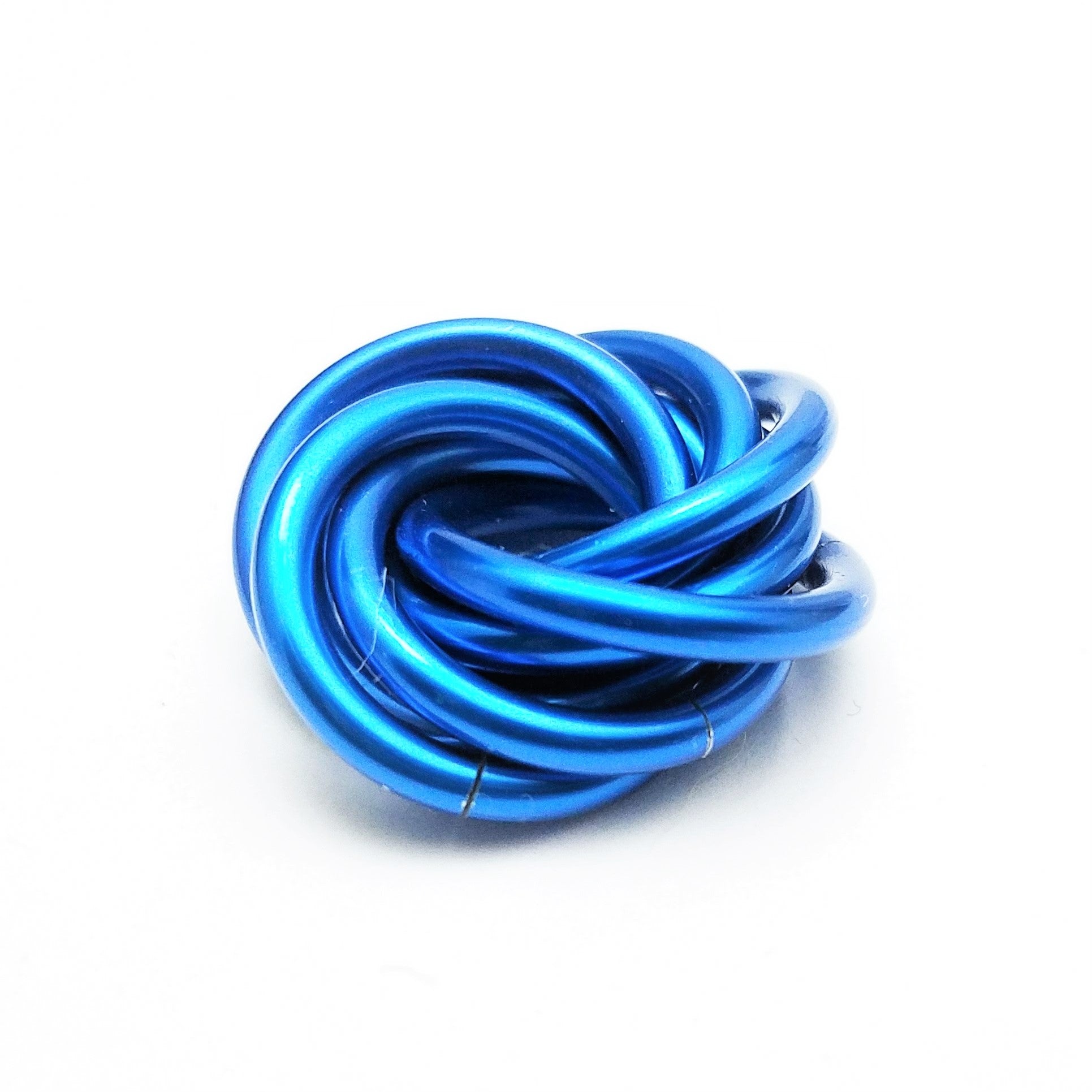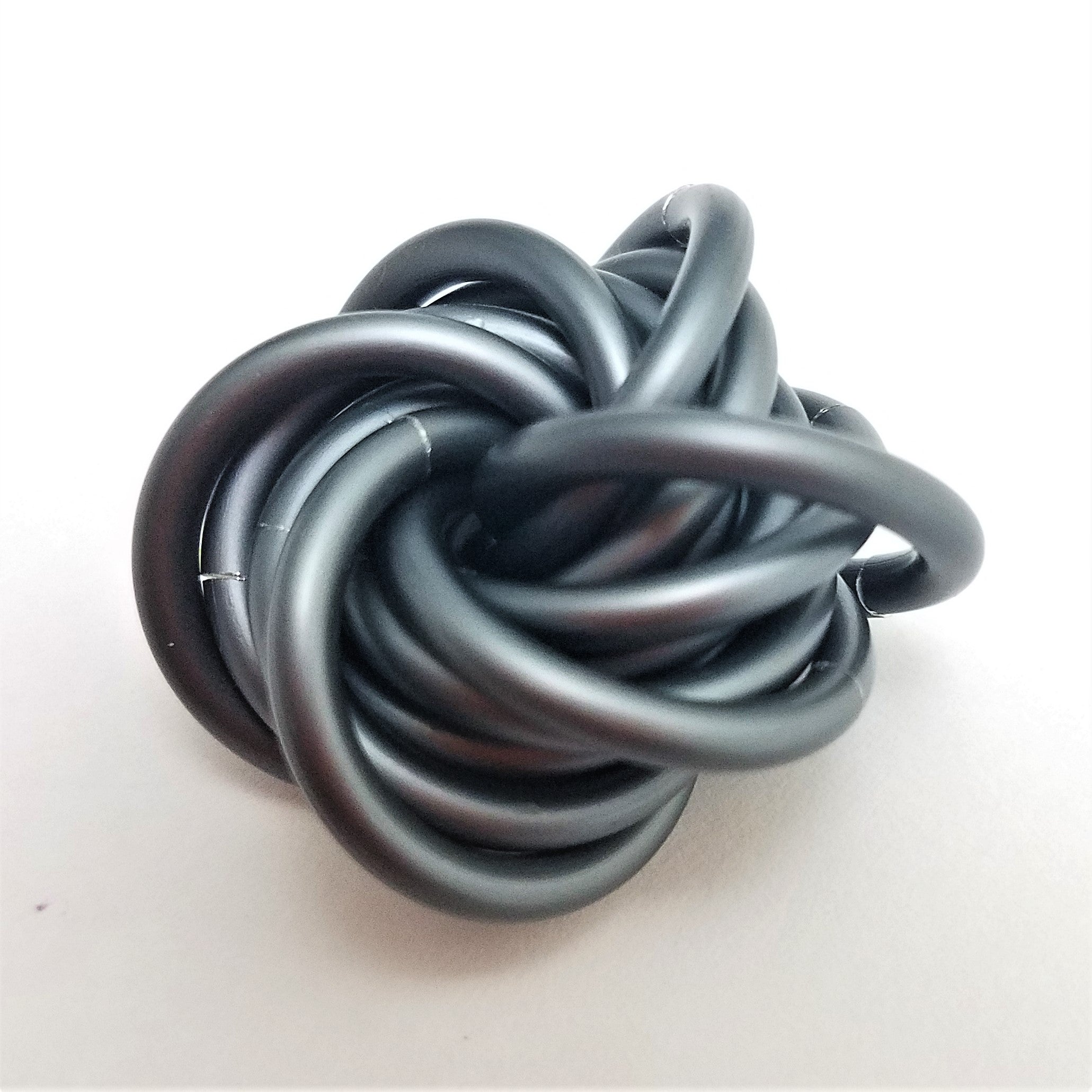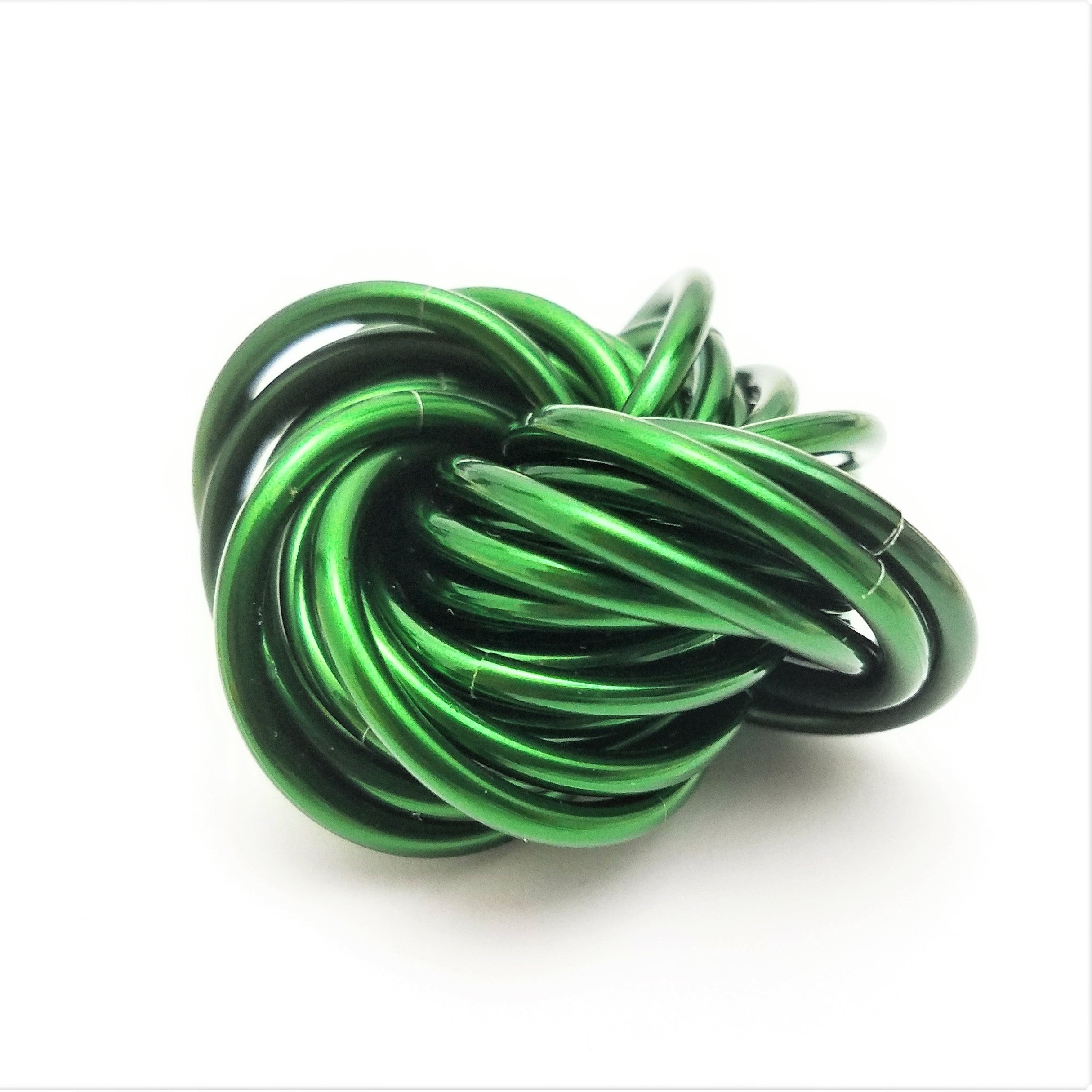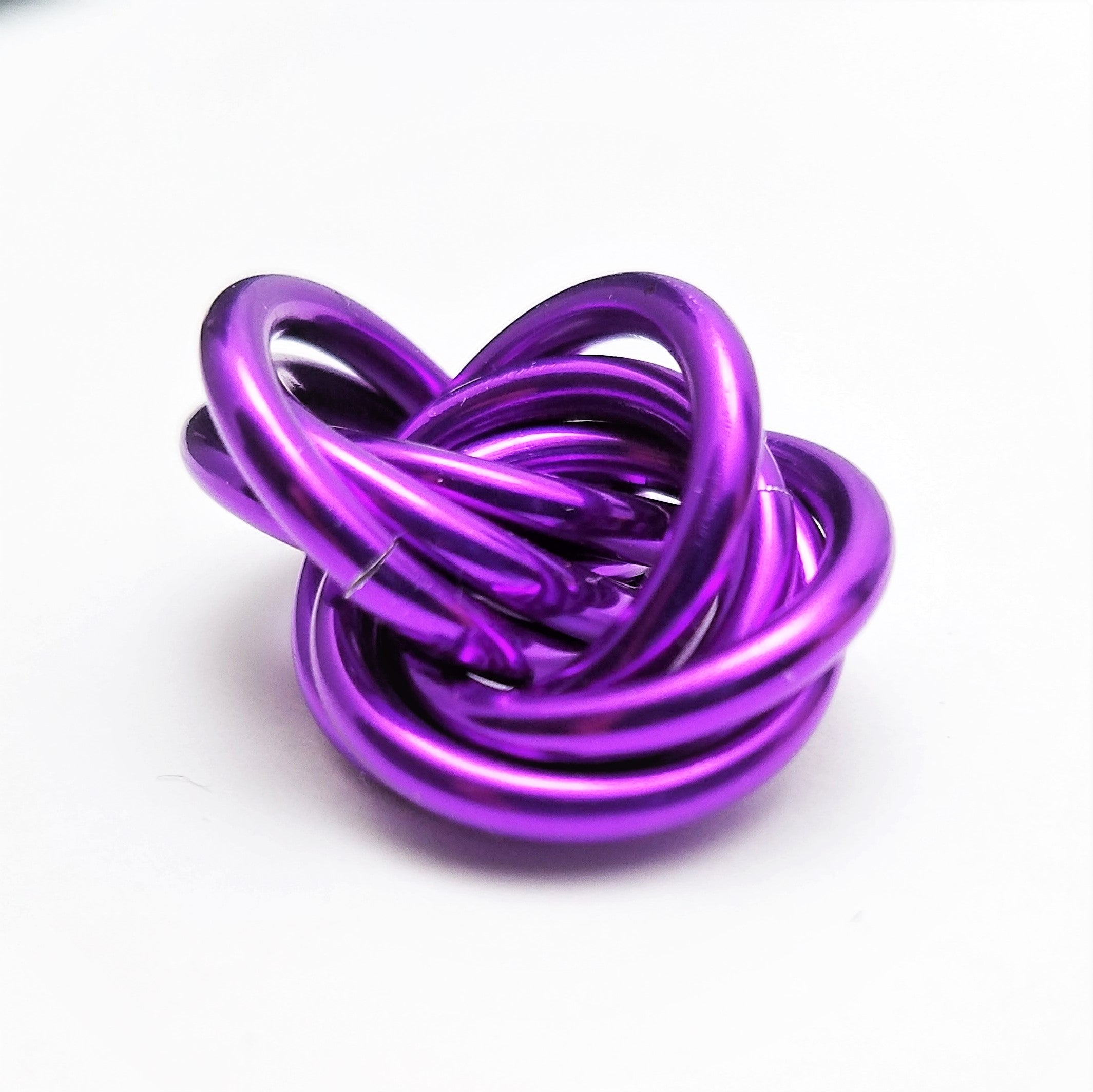 Rings are woven together so that you can rotate the rings through and spin this in your hand forever. The design cycles back in on itself so it goes on forever!