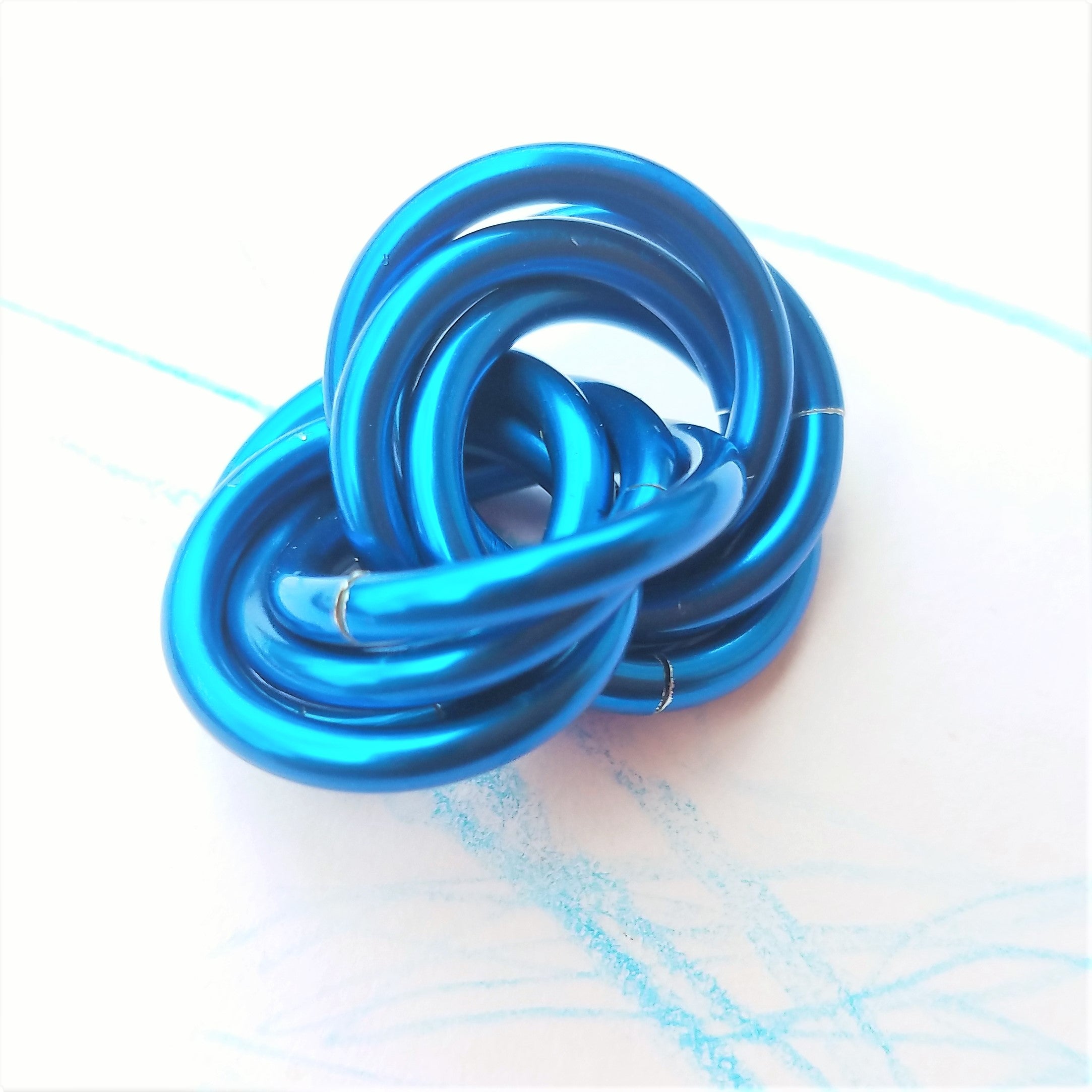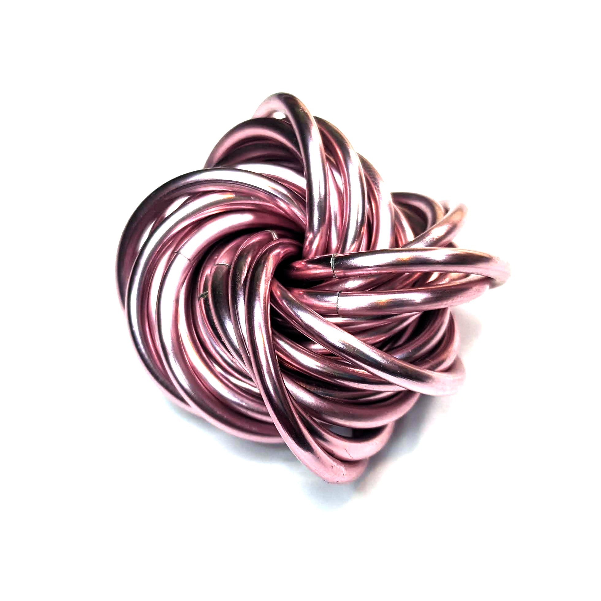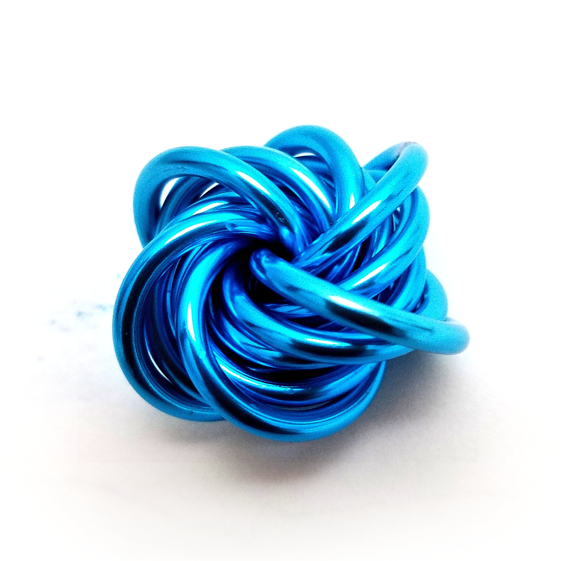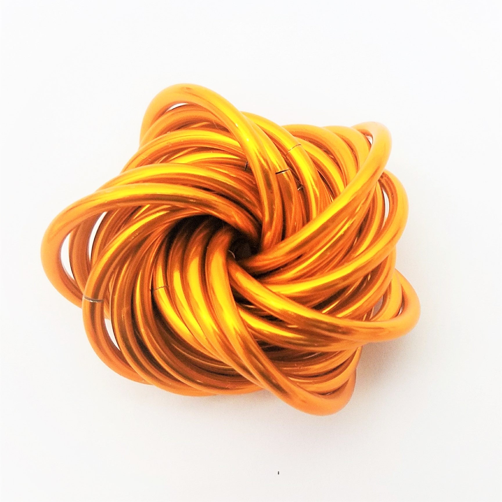 Rings are woven together so that you can rotate the rings through and spin this in your hand forever. The design cycles back in on itself so it goes on forever!