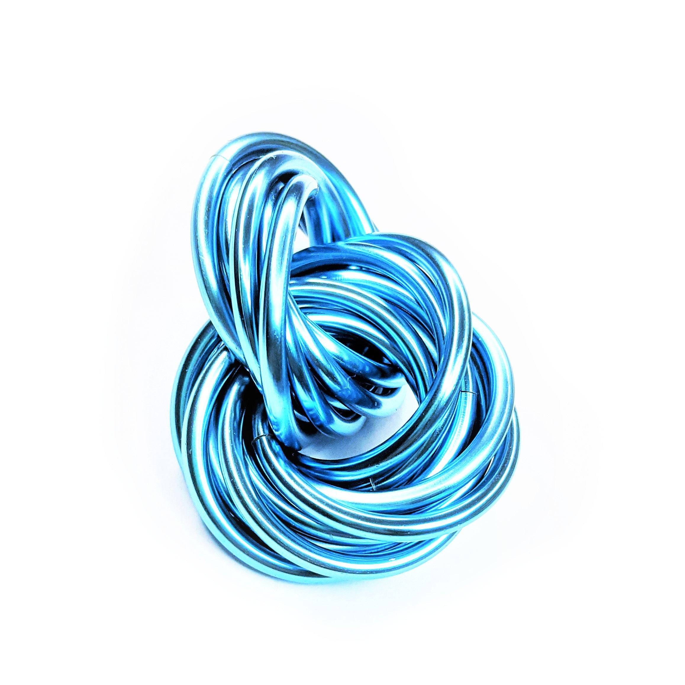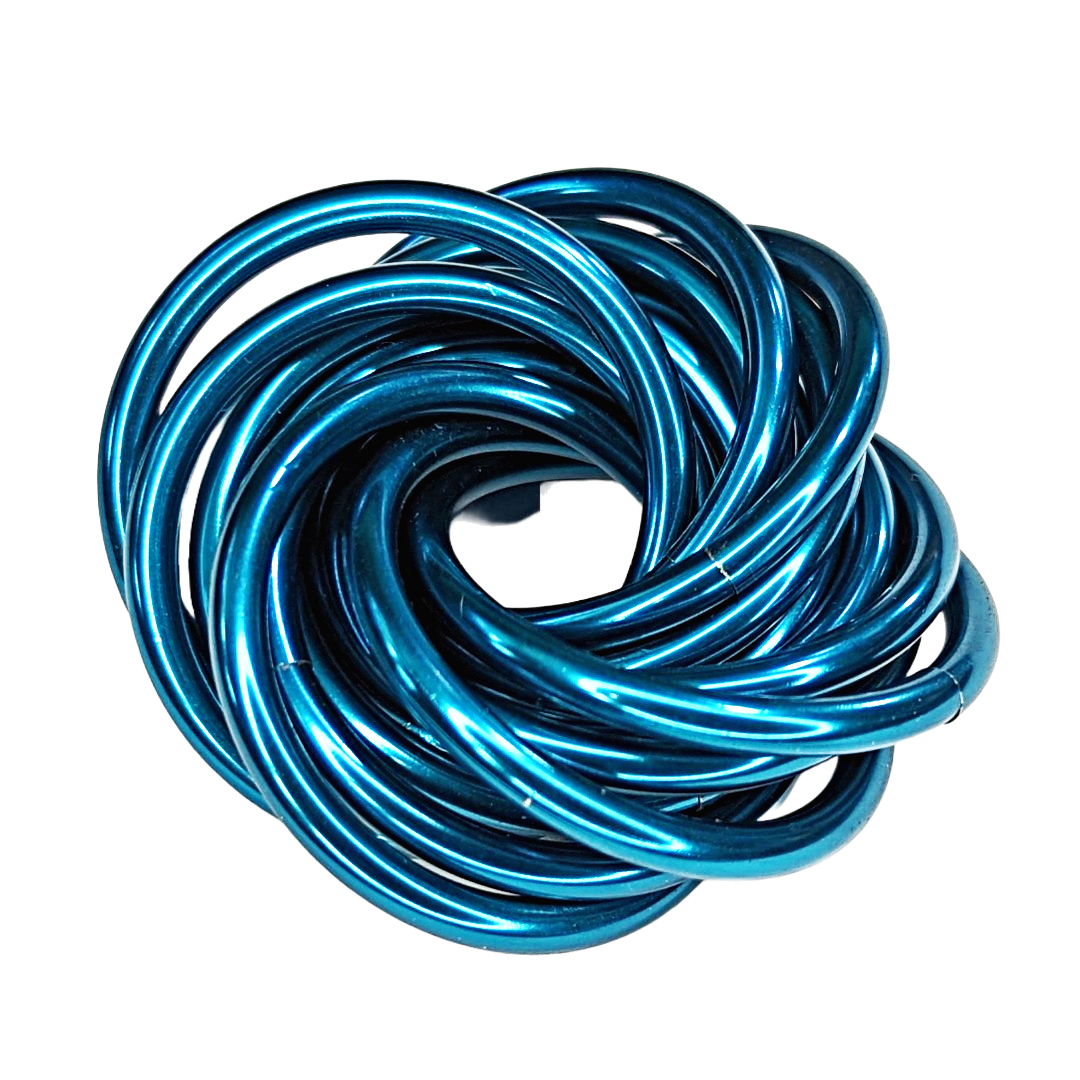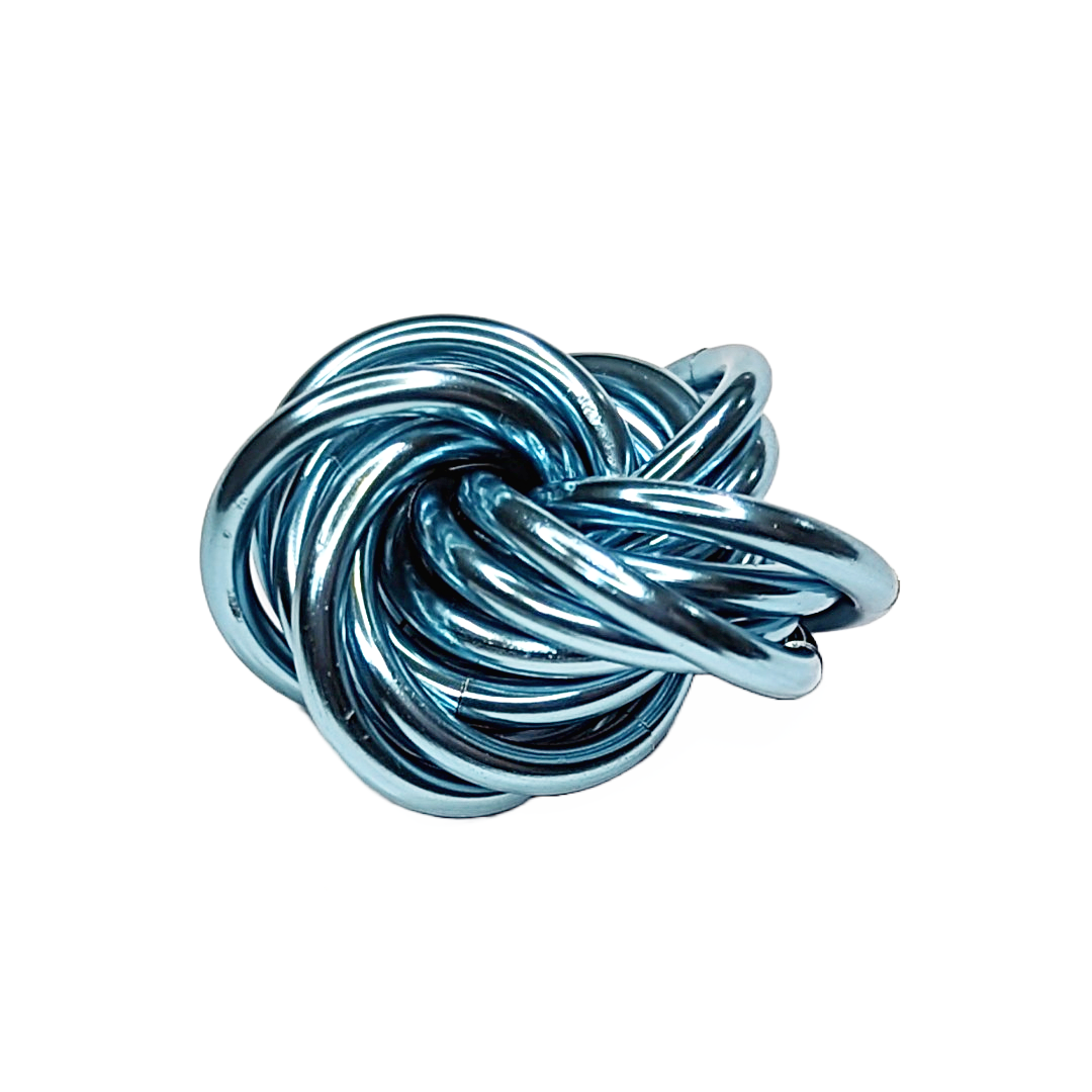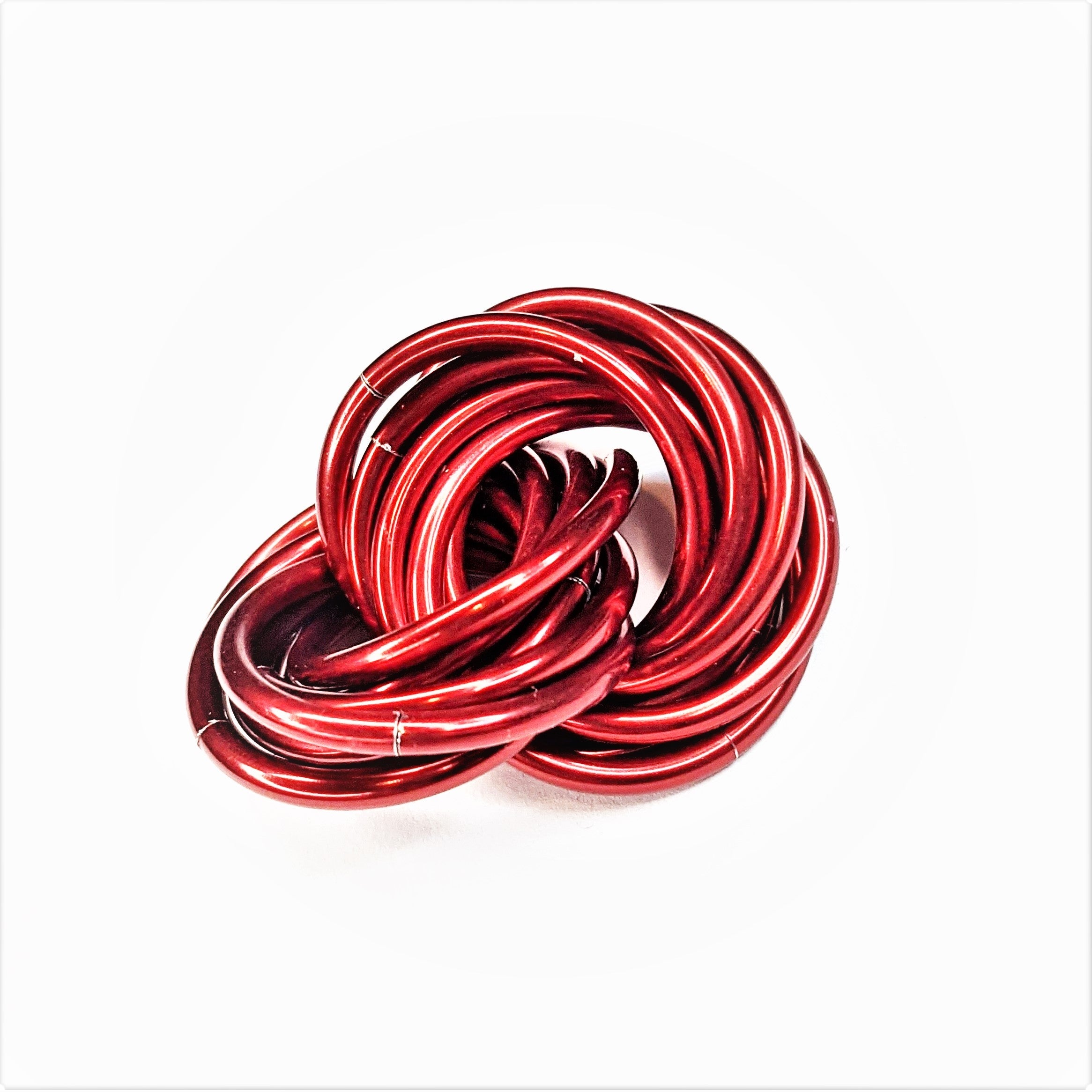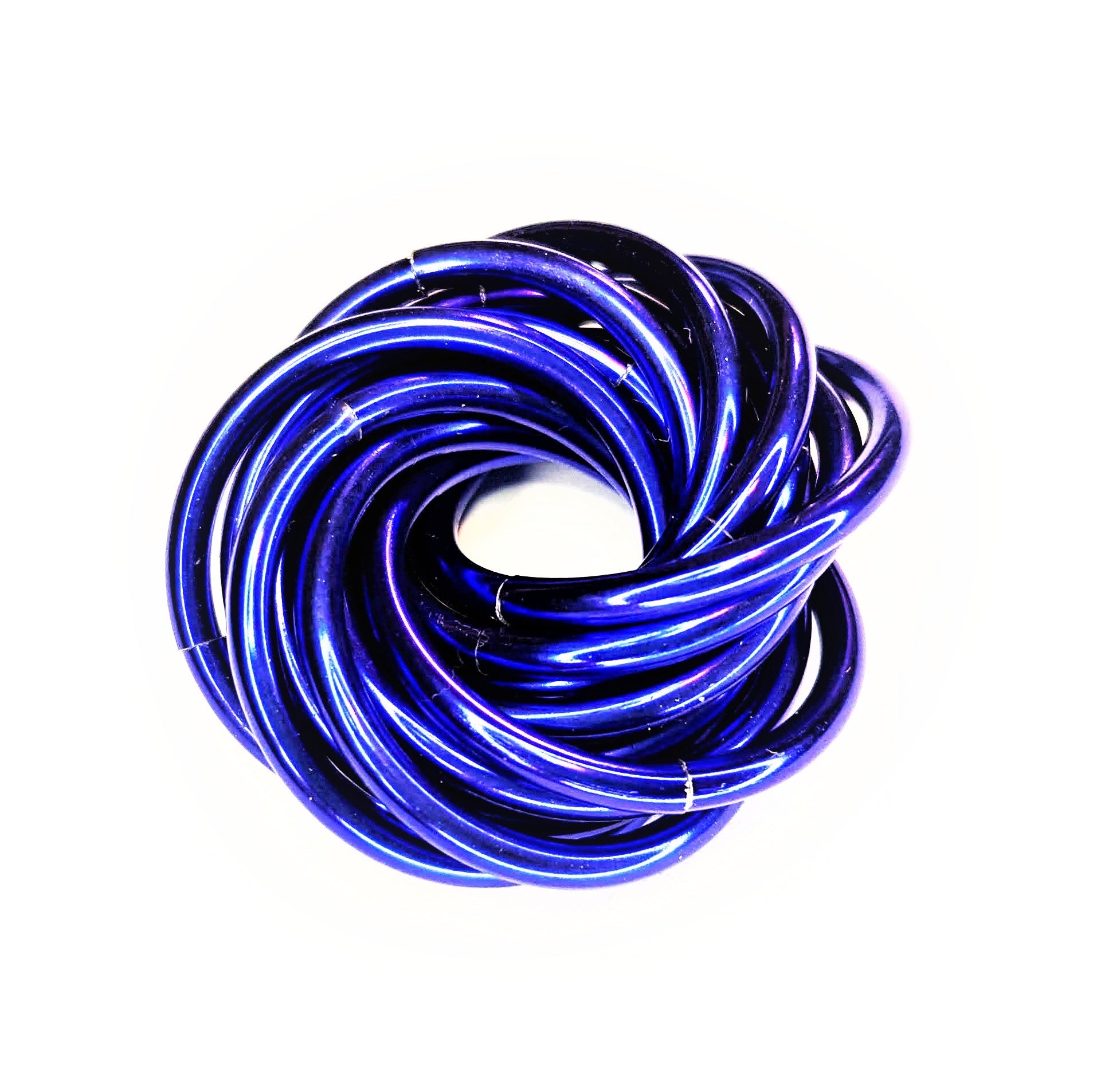 Rings are woven together so that you can rotate the rings through and spin this in your hand forever. The design cycles back in on itself so it goes on forever!