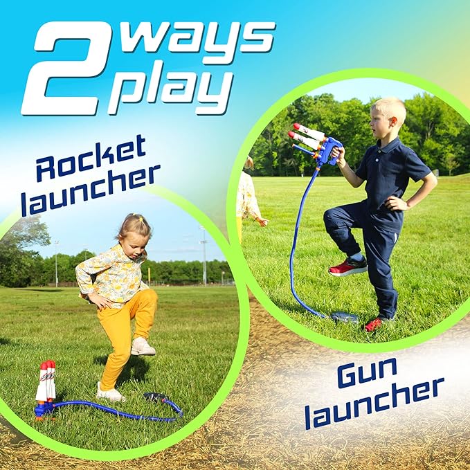 - Quality Construction - The rocket launcher set is made with sturdy and durable construction that is designed to last! This set is a great outdoor toy for endless hours of fun and possibilities. Also, a great gift for any active child! "