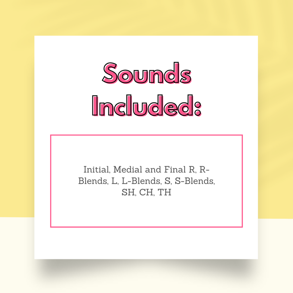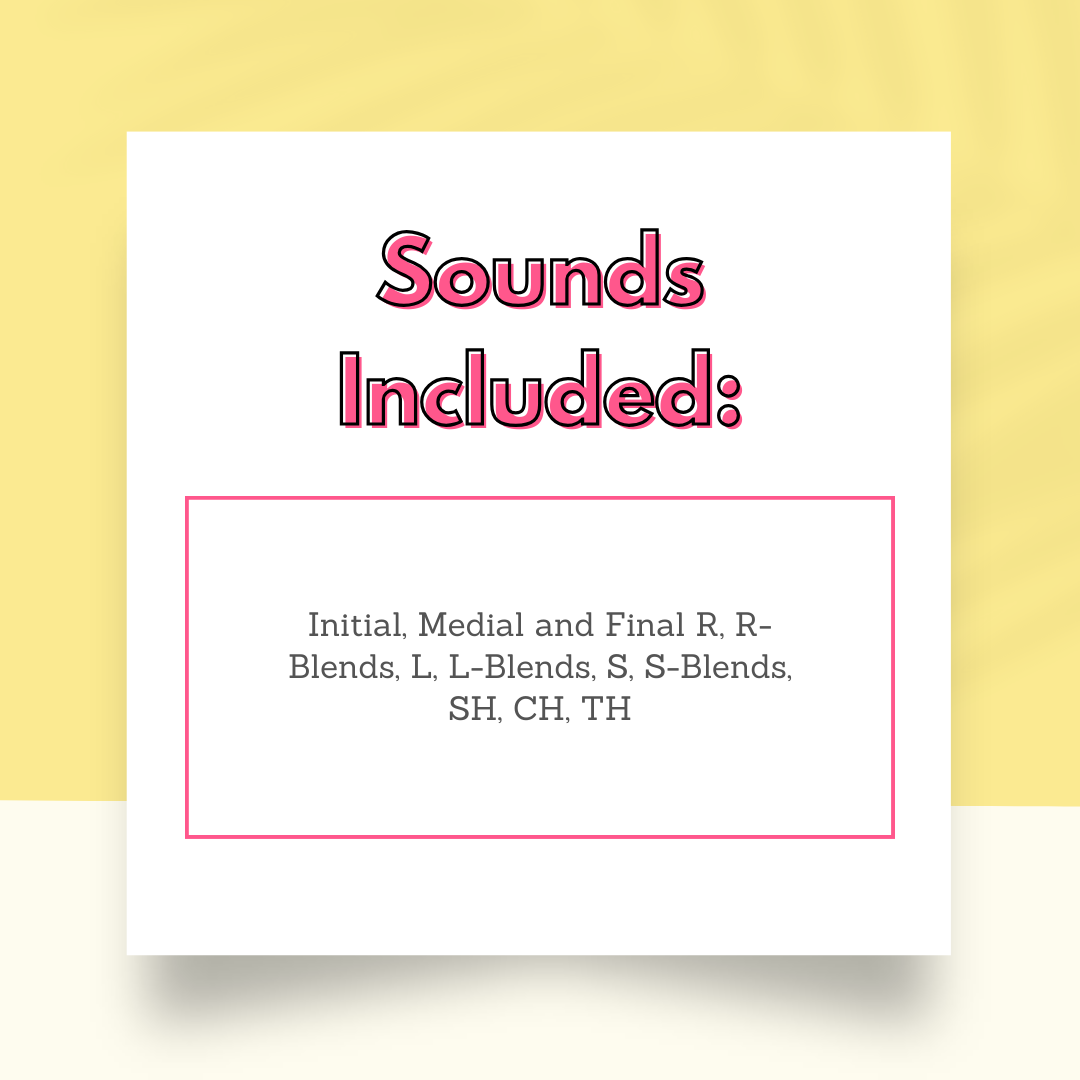 - R & R-Blends, L & L-Blends, S & S-Blends, SH, CH, TH
