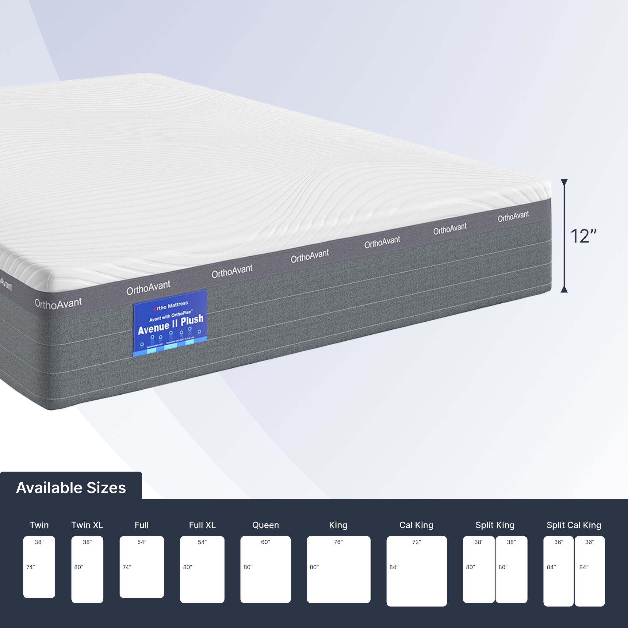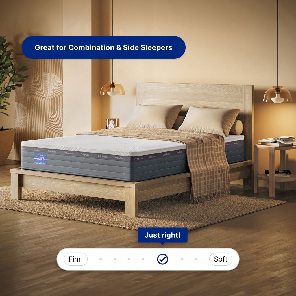 The Avenue II Plush features exclusive OrthoPlex® foam, a state-of-the-art technology that enables the body to rest in its proper sleeping posture. With 7 zones of dynamic resistance provides balanced comfort and support from head-to-toe.