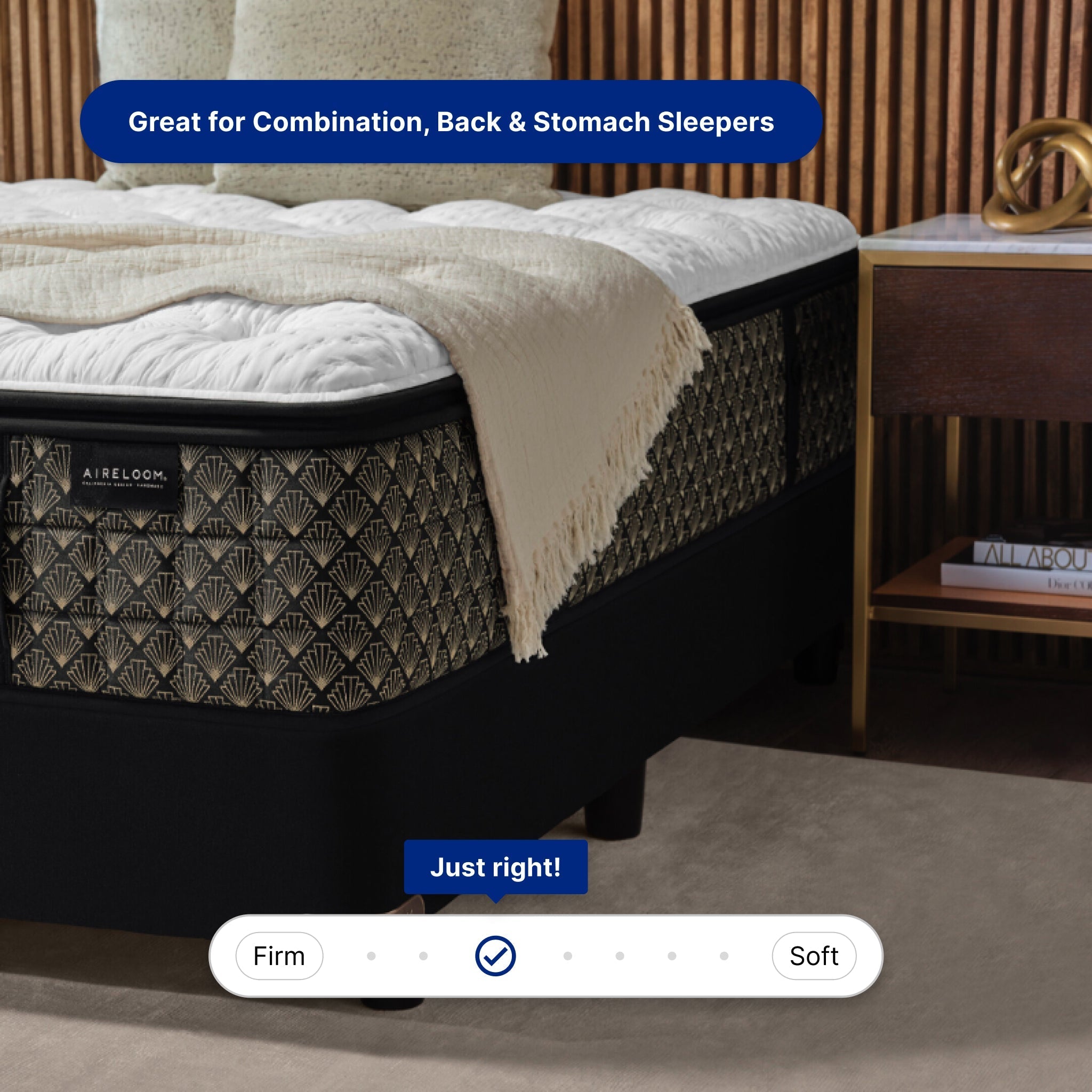 The Chester Luxetop Firm is handmade with patented Lift™ tech, allowing the natural materials in the bed to completely synchronize with your body. Combining Aireloom's Support-flex™, individually wrapped tempered coils, micro comfort coils, latex and cotton.