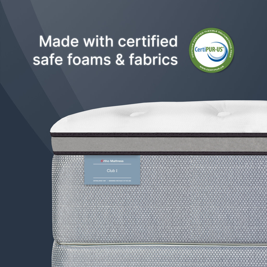 Great for side sleepers, the Club I Pillow Top is a medium feeling mattress. The pillow top provides pressure point relief for the hips and shoulders, while still providing low back support. Other features include Independent Coils and CertiPUR-US® Foam.