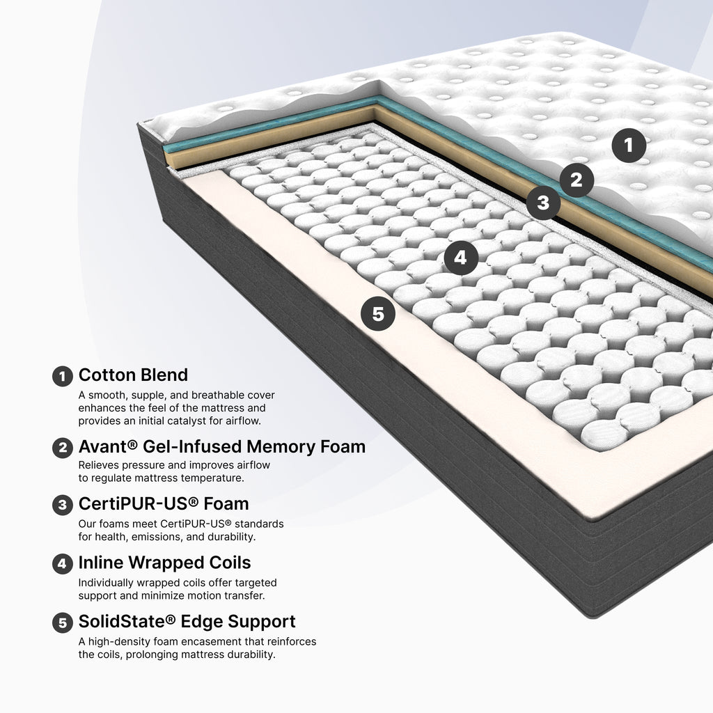 The Club Signature Pillow Top is a soft and cozy mattress that offers just the right level of pressure relief for your hips and shoulders. It features specs like high-quality independent coils, SolidState® Edge Support and Gel-Infused Memory foam.
