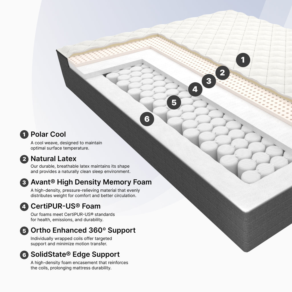 The Westbourne II Firm is a mattress that was specially designed for those who sleep on their stomach and backs. The Enhanced 360° Support coil structure, Latex comfort Layer, and Polar Cool cooling material makes a complete sleep system.
