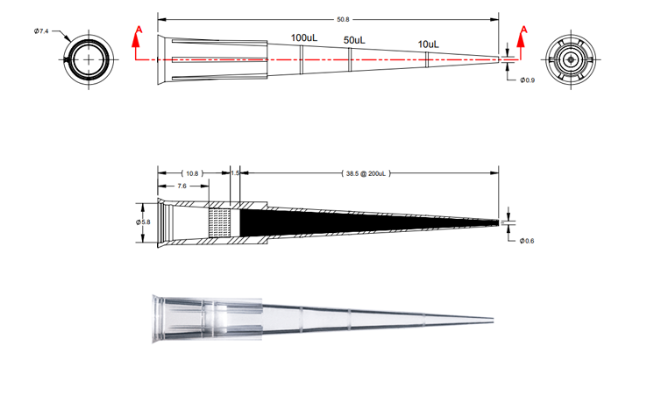 Quantity: 96 tips/Rack - 10 Racks/box - 5 boxes/Case - 50 rack/Case