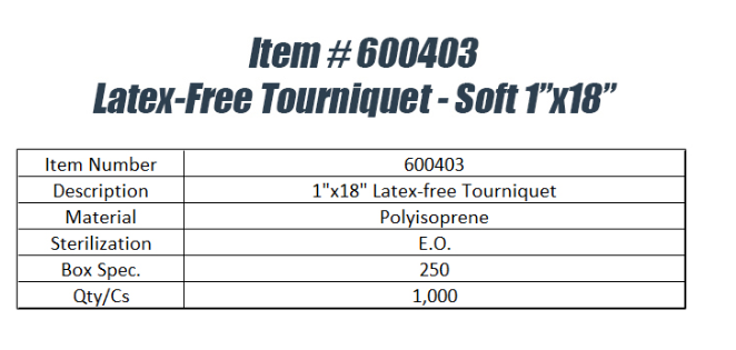 Description: 1"x18" latex-free tourniquet