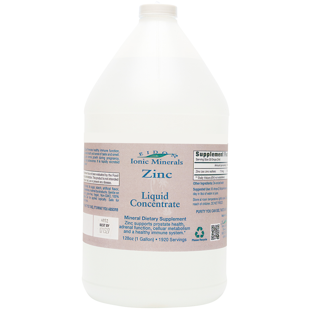 Eidon's Ionic Liquid Zinc is essential for the maintenance of immune system strength and glandular health. It can be rapidly depleted when the body is fighting an illness. Zinc is the tenth most abundant element in the human body. Zinc liquid is found in all organs, tissues and cells, and is involved in the function and activation of many cellular enzymes. Enzymes are the unique cellular protein compounds that make the human body function properly.
