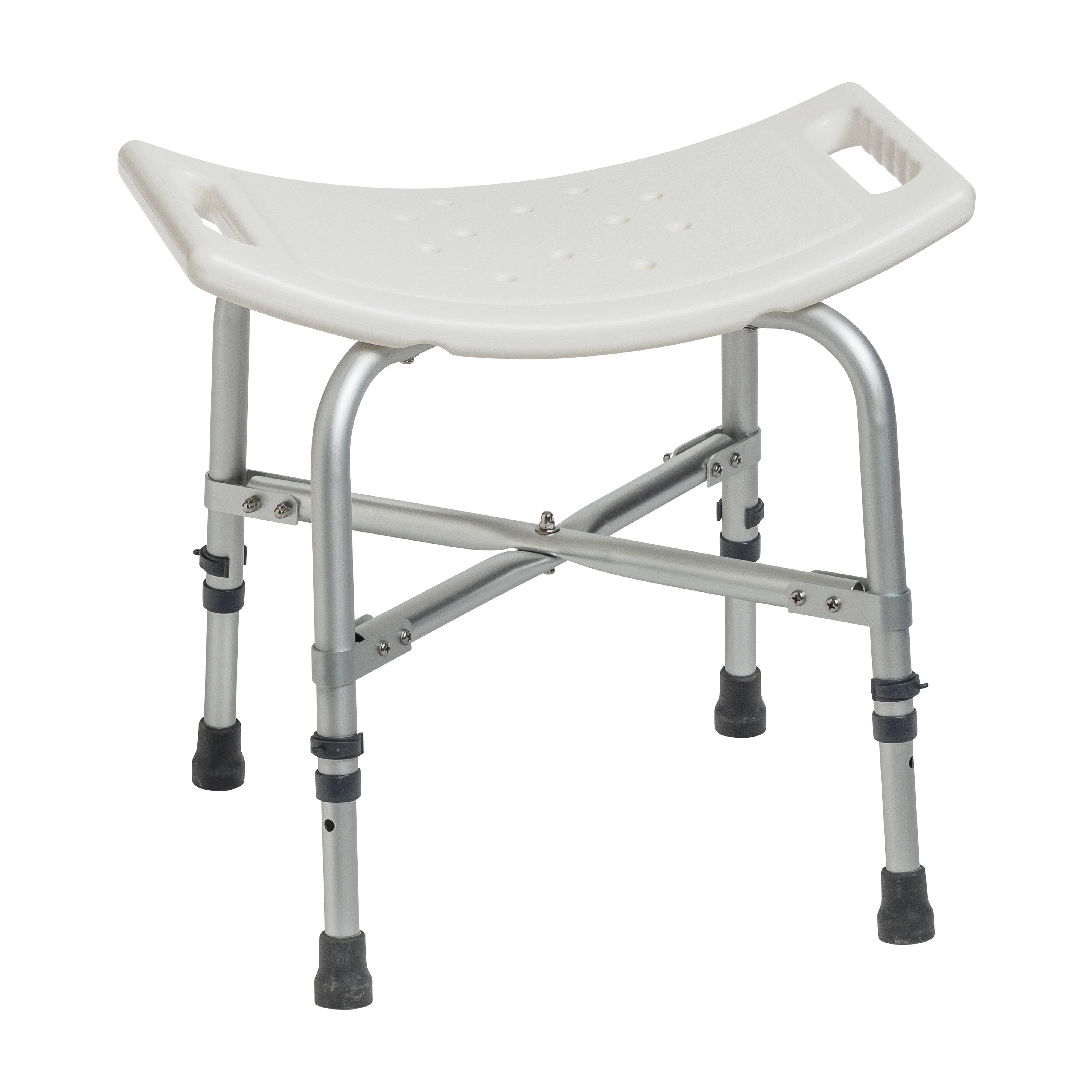 With a 500-pound weight capacity, this bariatric bath bench from Drive Medical is strong and sturdy. A cross brace attached with aircraft style rivets provides dependable strength. The blow molding on the seat are contoured to provide extra comfort. Drainage holes in the seat reduce slipping, while adjustable height legs ensure a proper fit. The aluminum frame is lightweight, durable and corrosion proof.