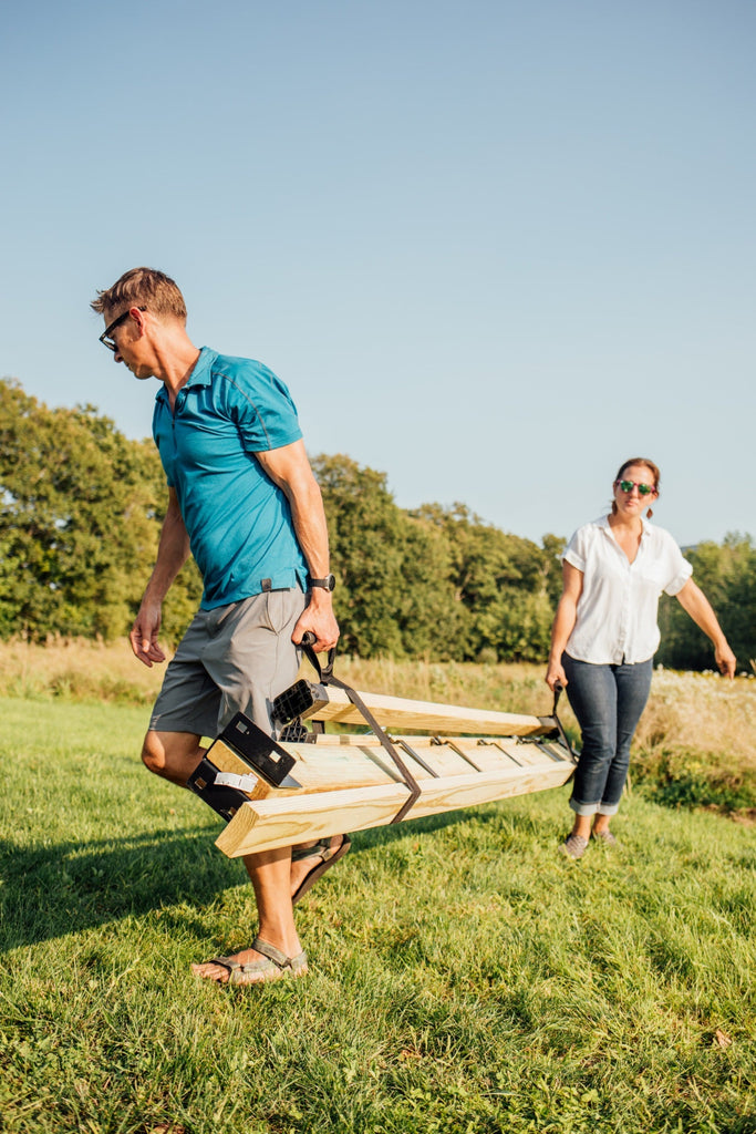 Easy Storage: When it's time to tidy up, simply unscrew a few wood screws and fold the frame down. Included straps make storage a breeze, so you can reclaim your outdoor space when playtime is over with our included storage straps.
