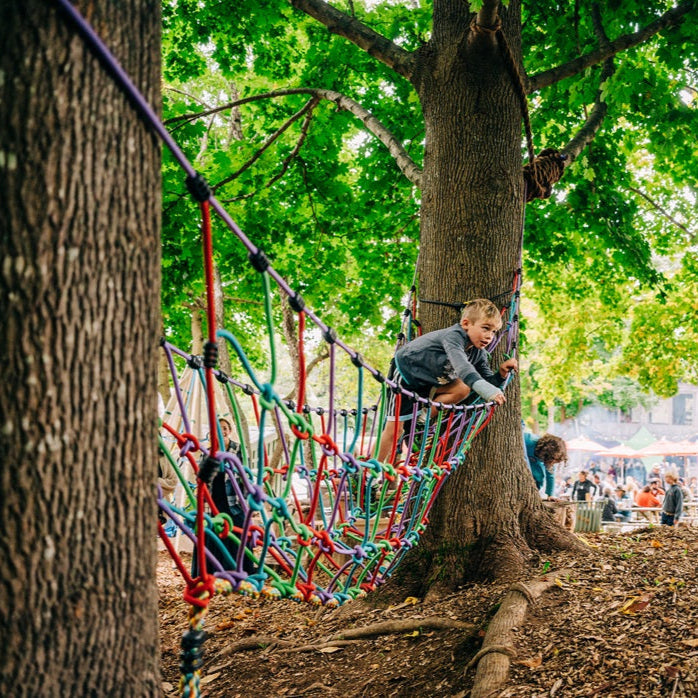 Transform any space with the Rambler Rope Bridge! This versatile and durable play bridge can connect multiple Bijou's, so your kids can have hours of fun. The Rambler Rope Bridge brings all the spirit of a jungle gym to your home without the hassle of dedicating permanent space in your yard. Let your child’s imagination run wild as they climb, crawl, and conquer new challenges — right in their own home.