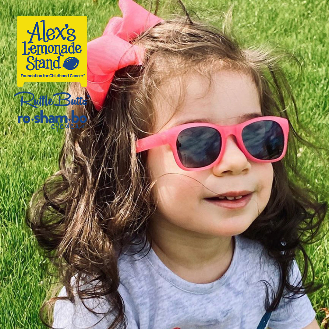 Two leading kids brands working together for one amazing initiative! Your purchase of this adorable Toddler Swim Bundle will support Alex’s Lemonade Stand Foundation. Your little one will not only look adorable in their RuffleButts swimsuit and Roshambo toddler shades, but you will feel great knowing that you are helping raise money to help fight childhood cancer. Let’s put the squeeze on childhood cancer! Learn more about this amazing organization and our combined efforts to give back. Sales supporting Alex's Lemonade Stand are not eligible for returns or exchanges.