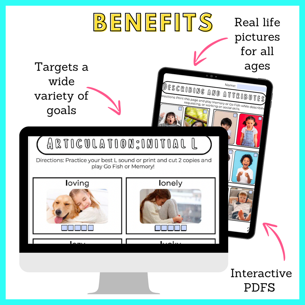 1. Materials are interactive PDFs and can be used digitally making them perfect for teletherapy. That means no more time spent printing, prepping, and laminating materials.