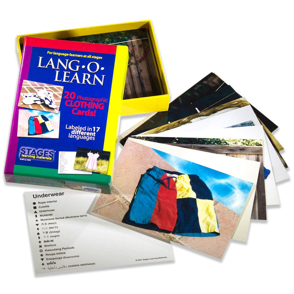The Lang-0-Learn Clothing Card Set includes 20 images: