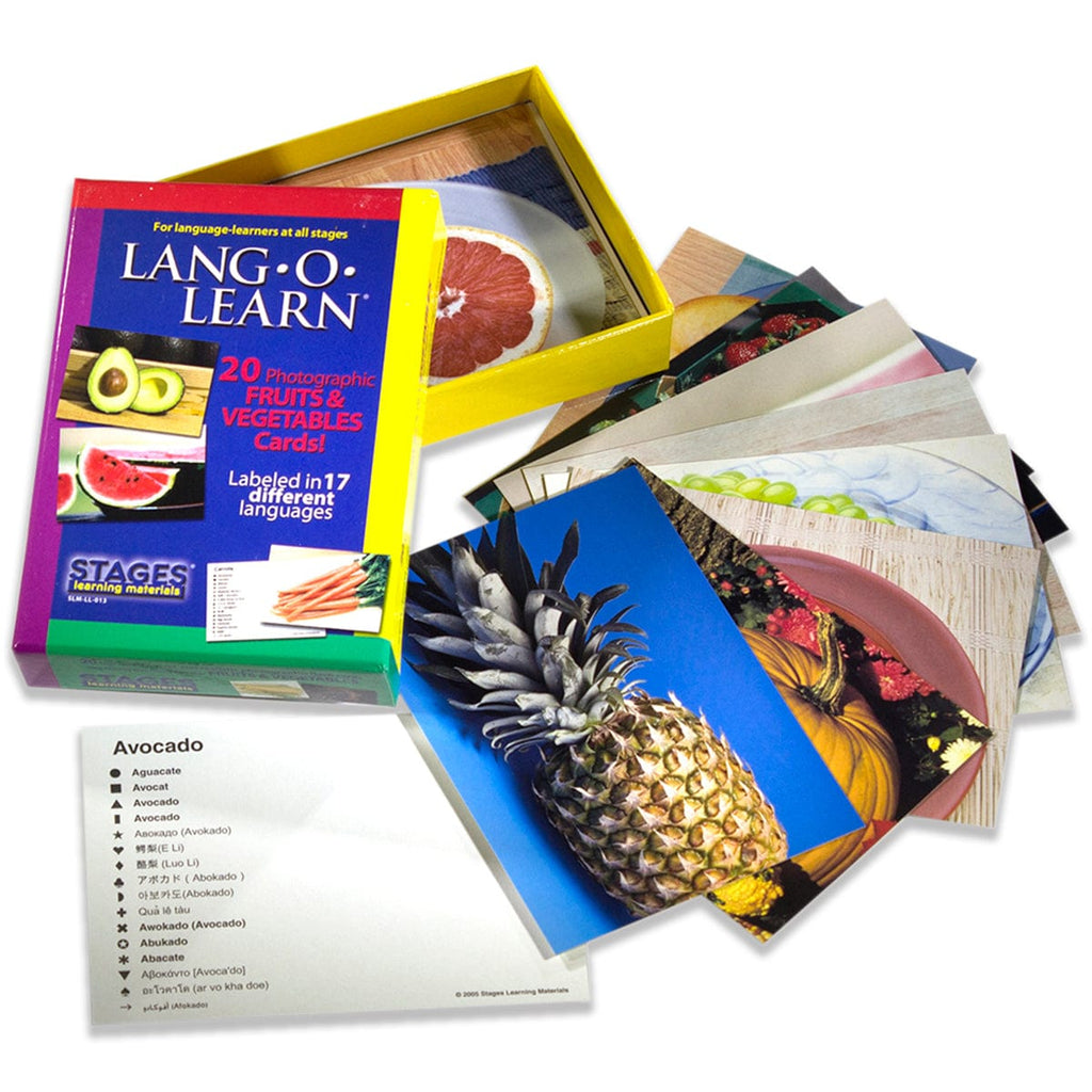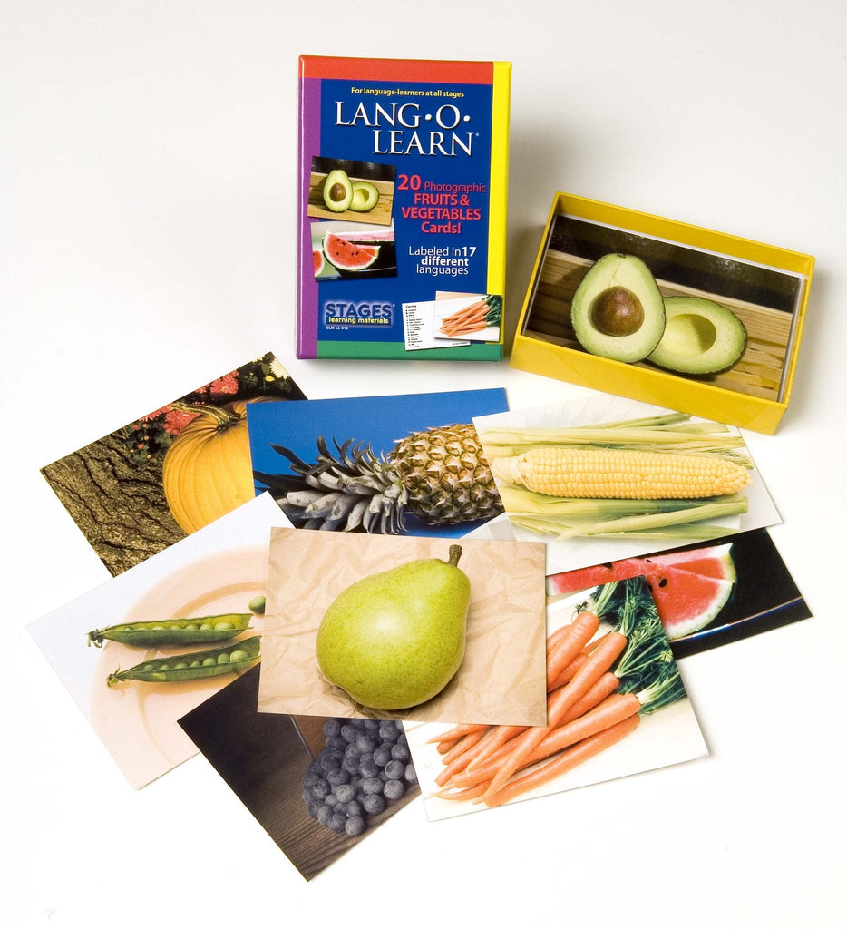 The Lang-0-Learn Fruits & Vegetables Card Set includes 20 images: