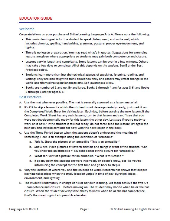 Language Arts Kit A uses the same, proven methodology found in ShillerLearning Math Kits I, II, and Fractions.