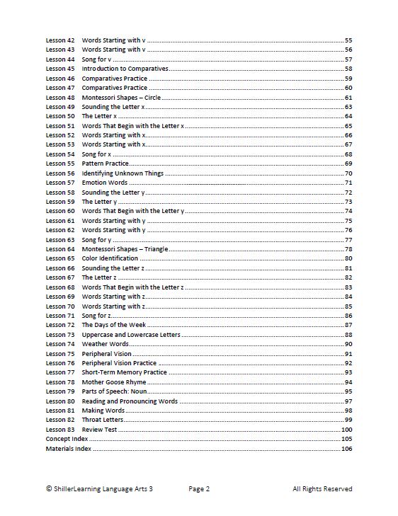 The kit includes reading, spelling, phonics, literature, composition, handwriting, beginning grammar (noun, verb, article, adjective), and typing for 3-to-6-year-olds. Your child is ready for this level when he or she starts their ABCs.