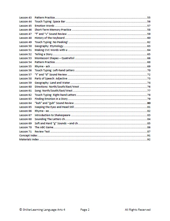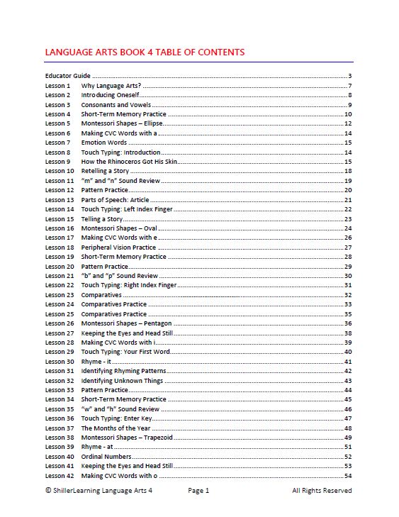 • Four 4-color lesson book PDFs covering 2 years of language arts: