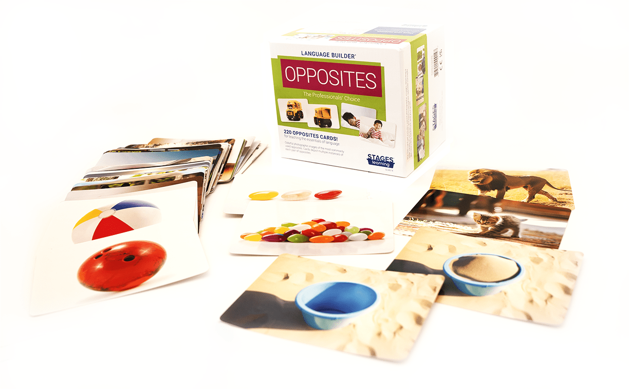 Language Builder: Opposites Cards set is a comprehensive collection of situational images designed specifically to provide the clearest possible depictions of a wide range of opposites.