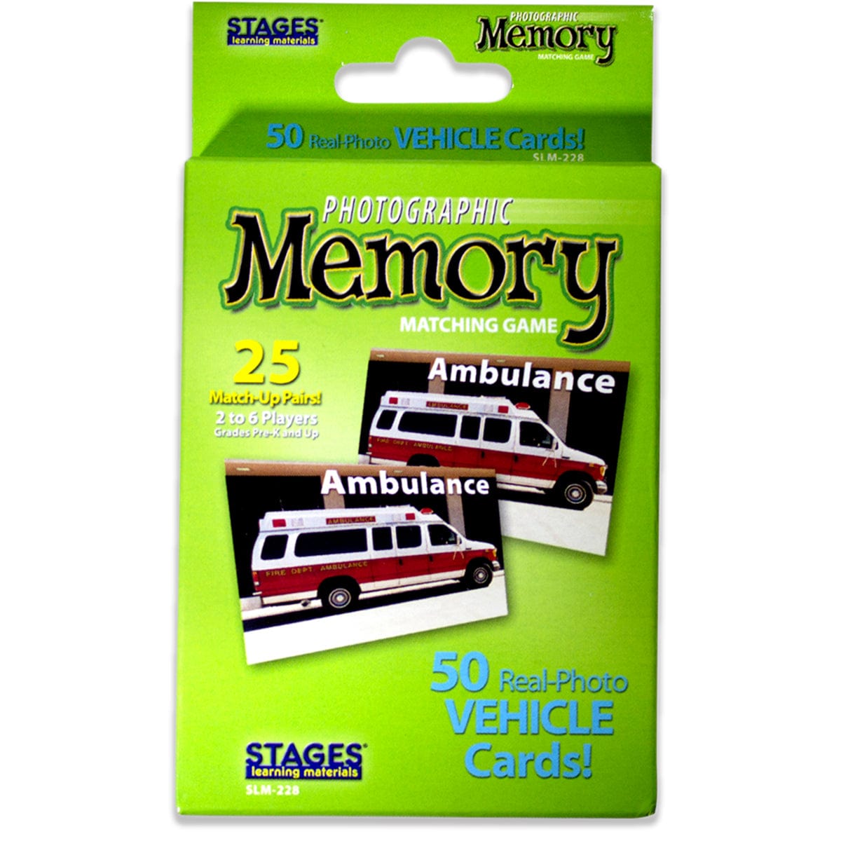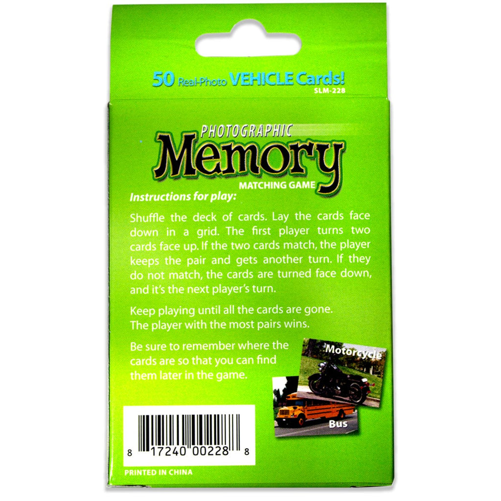 Help your children build memory skills in a fun, innovative way by matching colorful, realistic photographs. No reading is required, but cards include the name of the picture to promote early sight reading. This is a great new photographic twist on a time-honored game. Game includes 50 Cards - 25 matched pairs. 2 - 6 players. Pre-K and Up.