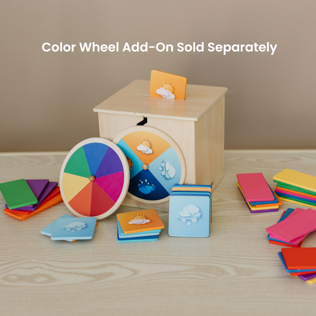 • Included: Weather wheel, 20 weather pieces, and a wooden box for storage (Color Wheel Add-On Sold Separately)