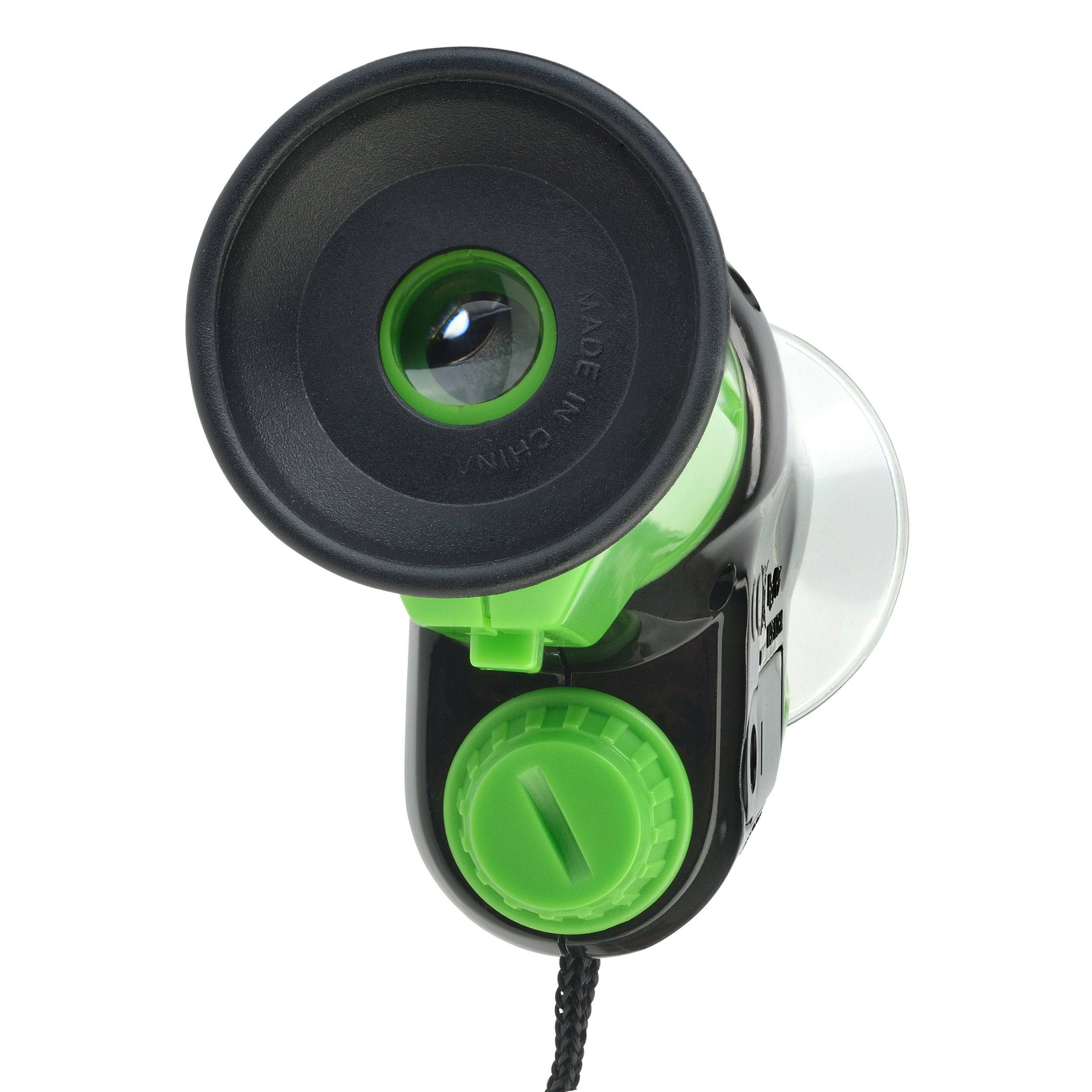 This hand held field microscope offers 40x magnification and is equipped with LED illumination for brighter close-up viewing. Rotate the view cylinder to adjust focus. Includes a lanyard for on-the-go discoveries, outdoor or indoor. Requires 2 - AAA batteries, not included. 6.3” high / 16cm high.