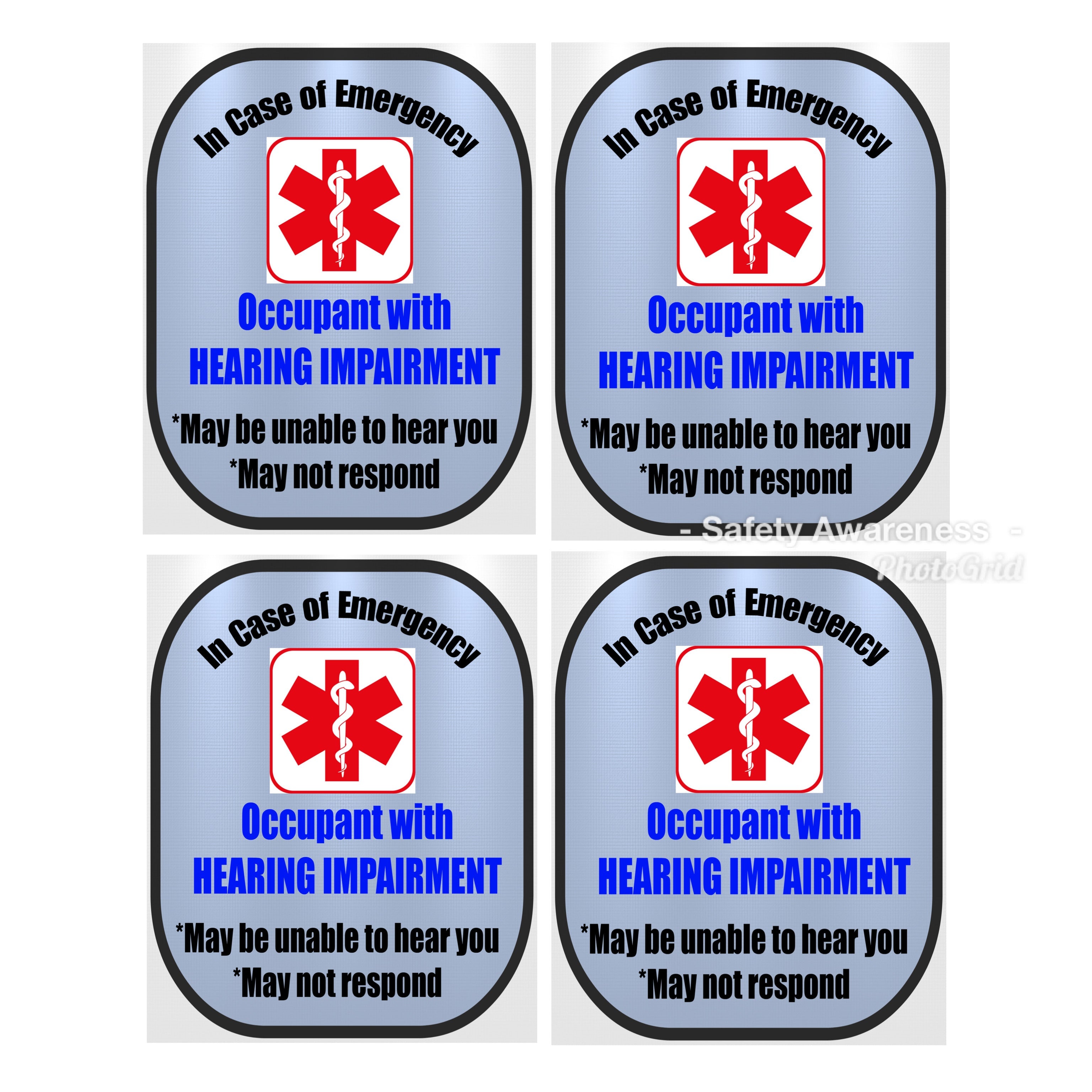 4 Pack Hearing Impaired Decal Medical Alert Safety Sticker Set