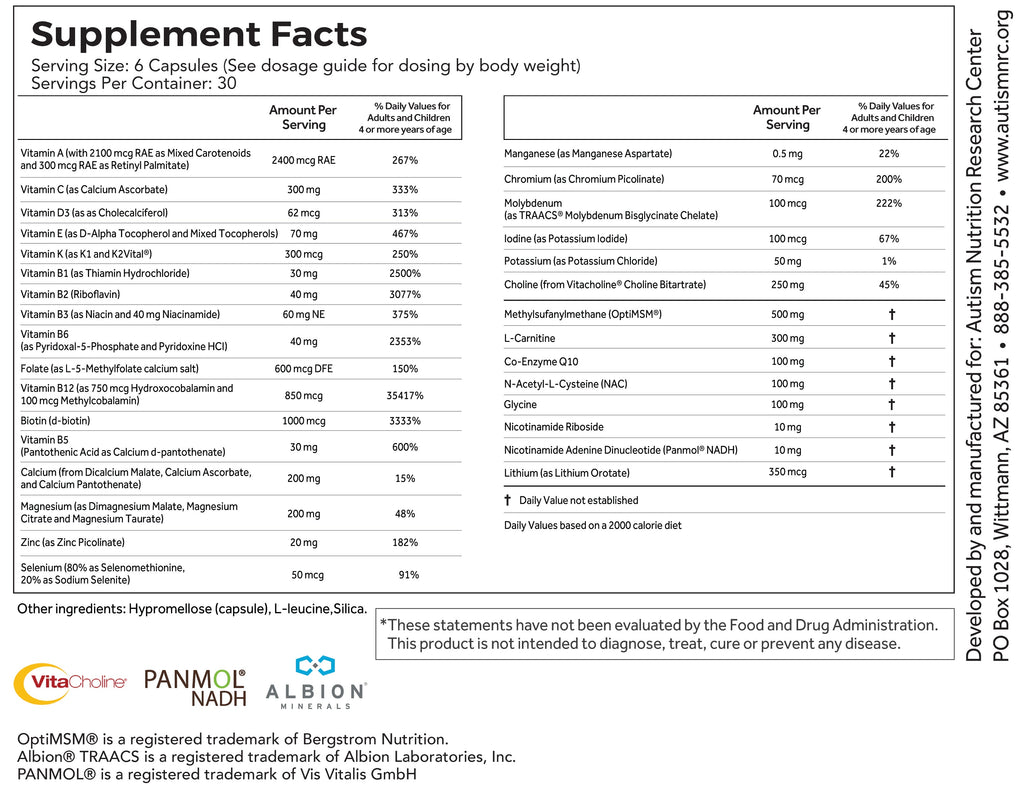 Many vitamins and minerals at doses determined to be optimal based on research studies, in highly-bioavailable forms for optimal absorption