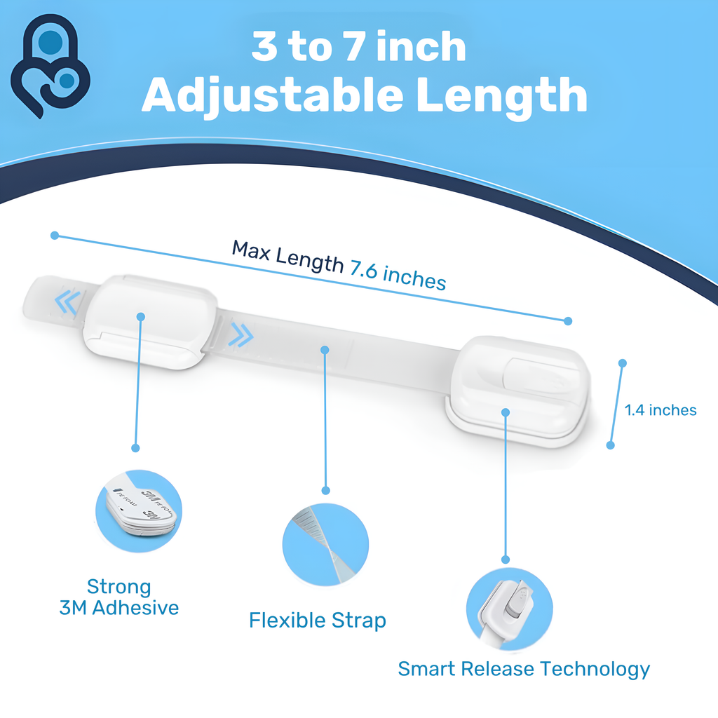 • Baby Proof Me Adjustable Safety Strap - Strong Childproof Adjustable Multi-Use Straps for Cabinets & Drawers, Toilet Seats, Refrigerators, Dishwashers, Microwaves, Closets, Ovens, Trash Cans, Tool Sheds, & More. 3M Adhesive,  [No Drilling Required].
