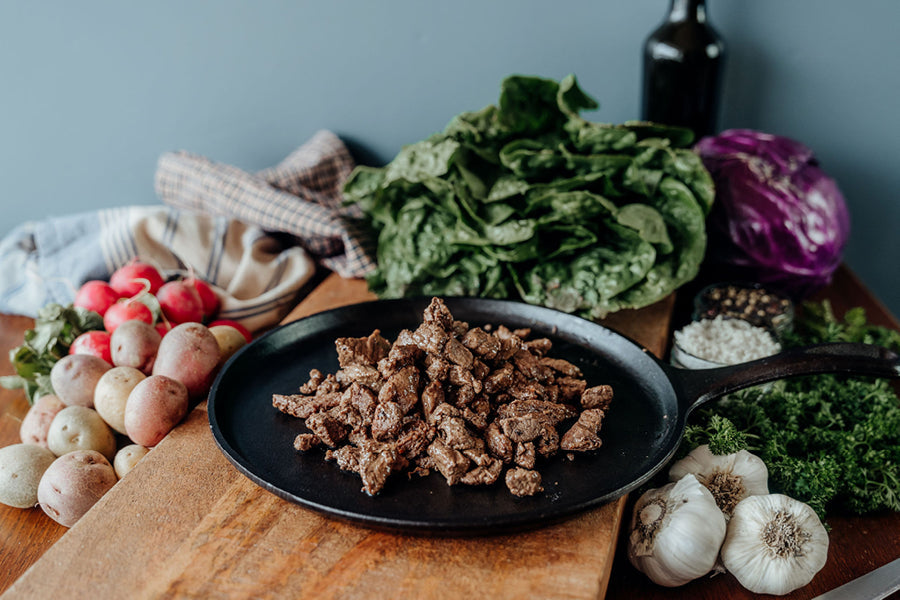 Each one pound package contains cubed stew meat pieces. These can be used in a number of bison dishes, or added to kabobs for your next barbecue!