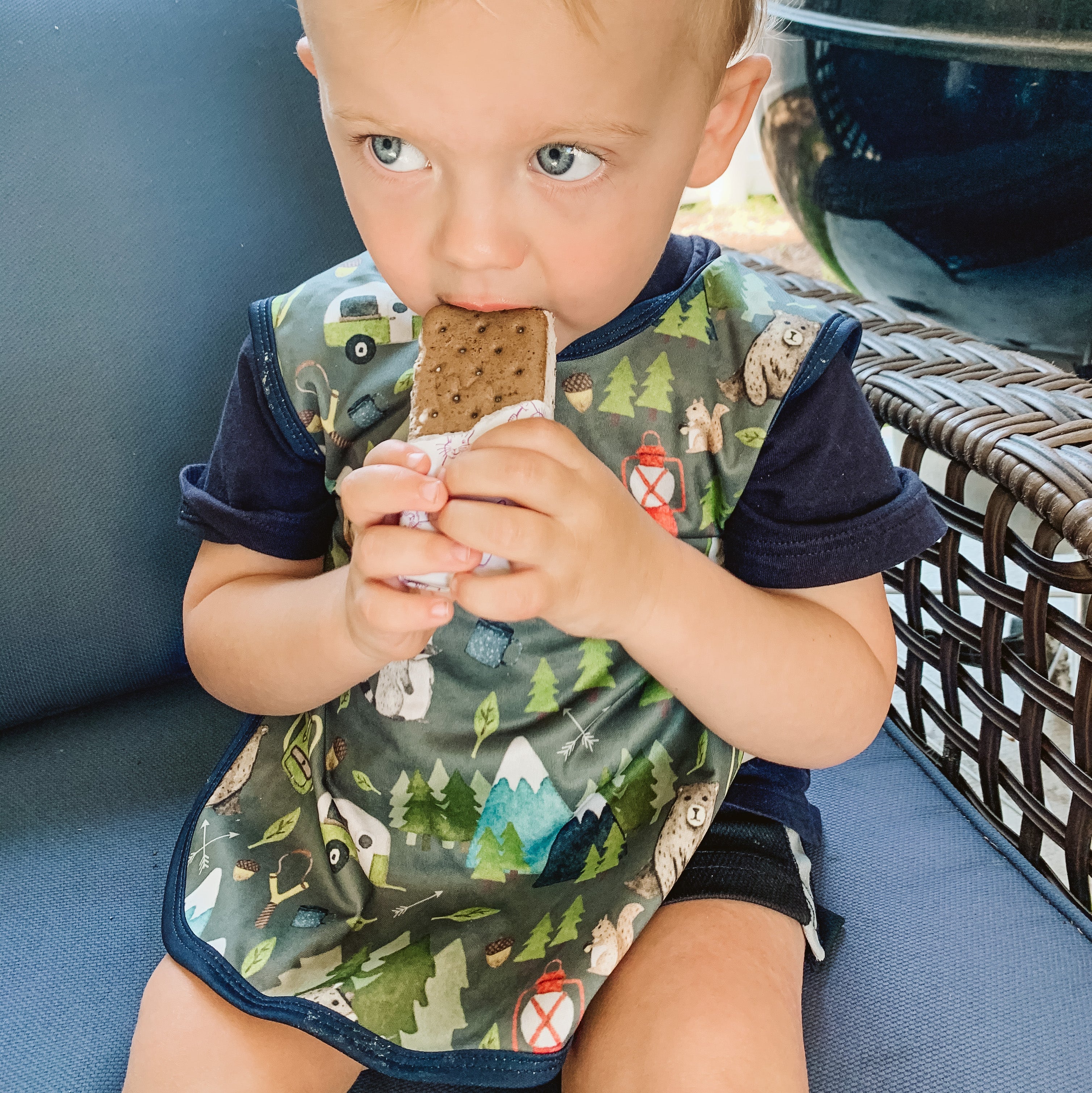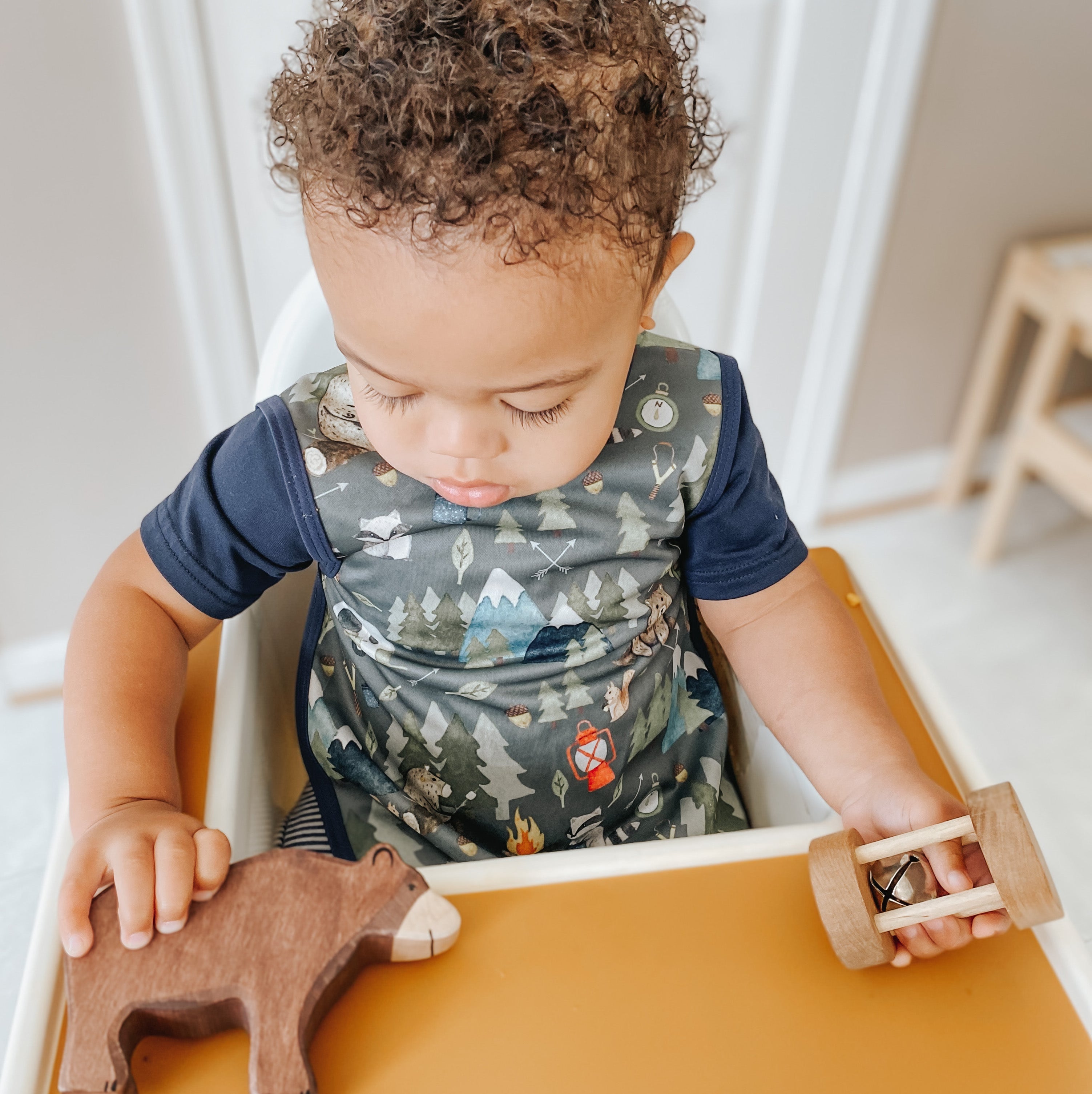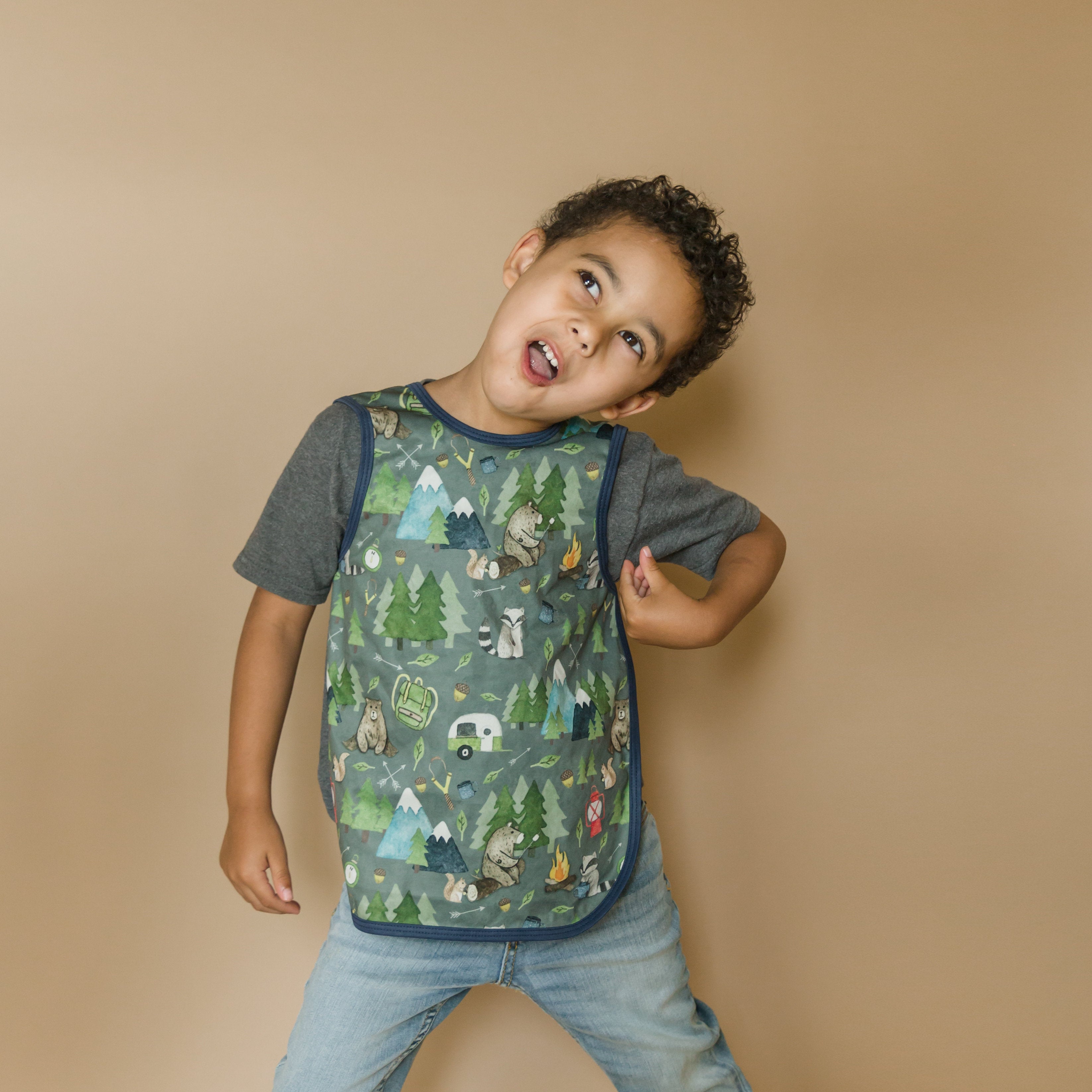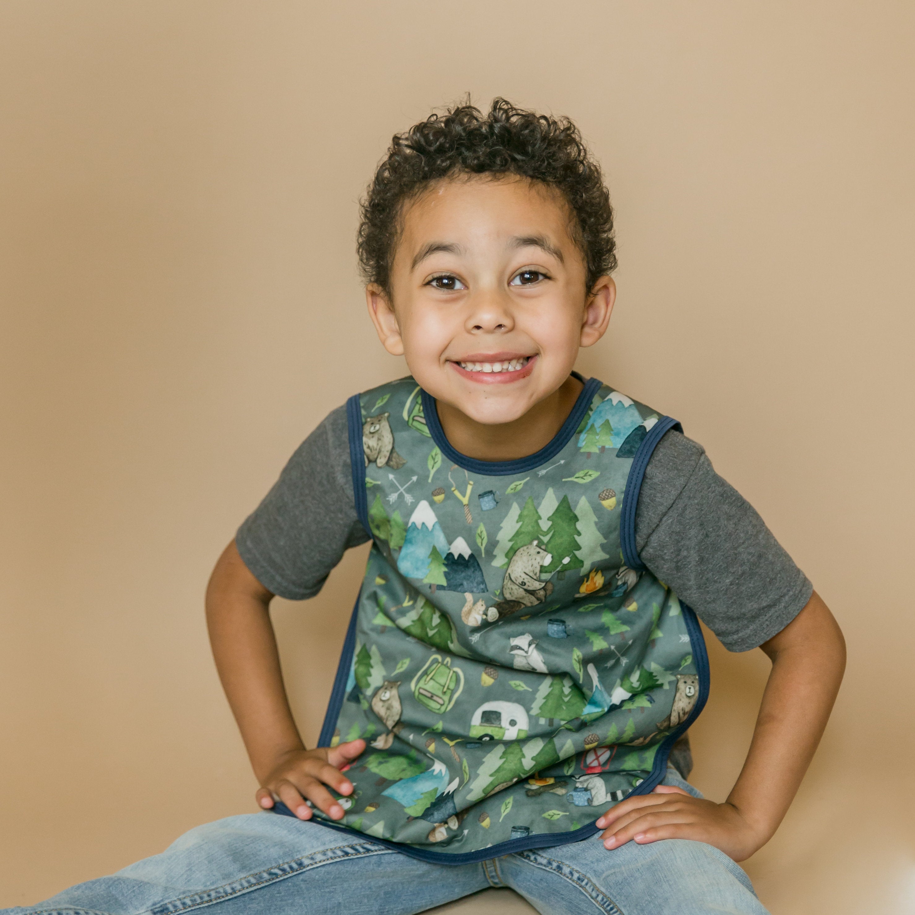 This best-selling “Bapron”, also known as a bib-apron hybrid, full-coverage bib, smock, or apron, is designed for comfort and safety. Because of their comfortable, secure-fitting horizontal ties and their full-coverage design, Baprons are the perfect companion for mealtime, art, and sensory play!