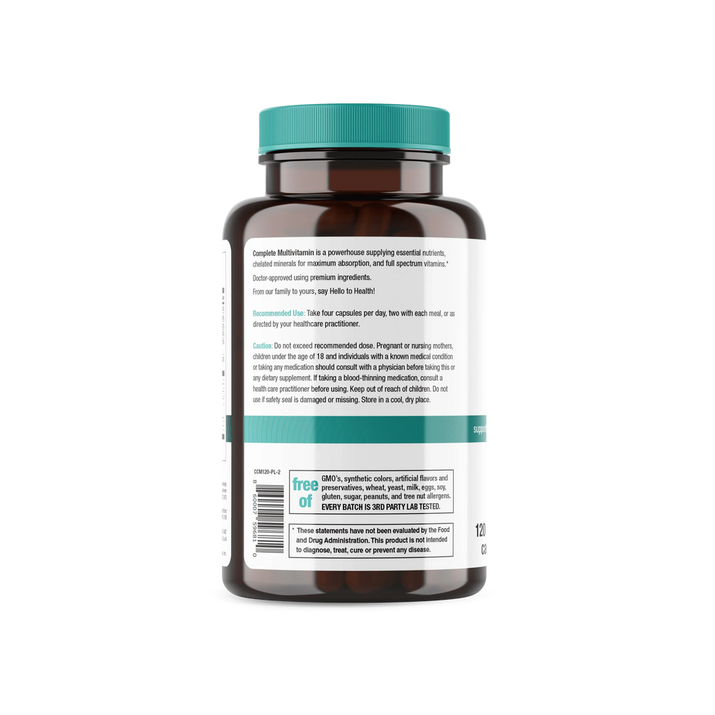 Complete Multivitamin is a full-spectrum multivitamin/mineral with chelated minerals for enhanced absorption and bioavailability.