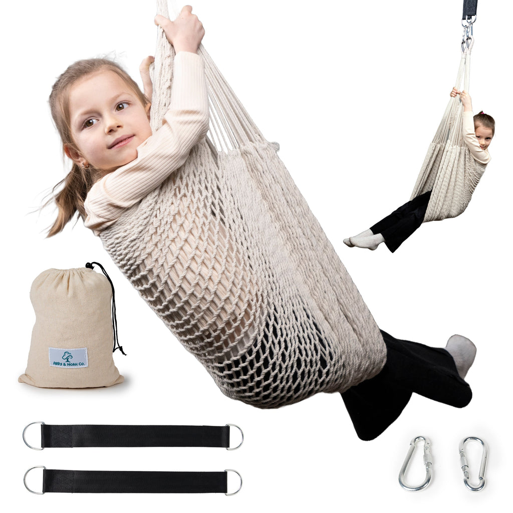 Our Sensory Swing is designed not just for play, but for emotional regulation, sensory relief, and comfort. Each detail, from handwoven cotton material to the sensory input, has been shaped by real families navigating ADHD, autism, anxiety, and trauma.