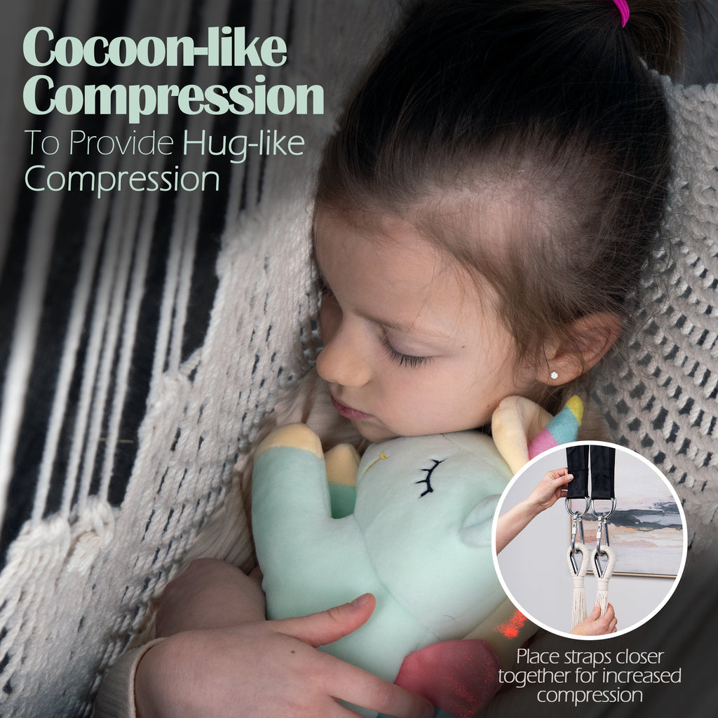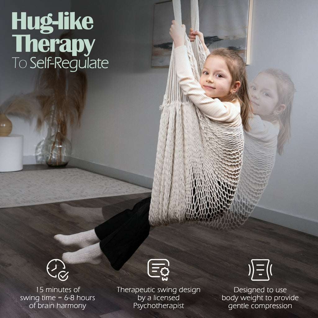 This is more than a swing, It hugs them in all the right areas to stimulate their pressure points giving them just the right pressure and swinging sensation to calm and reset their system.