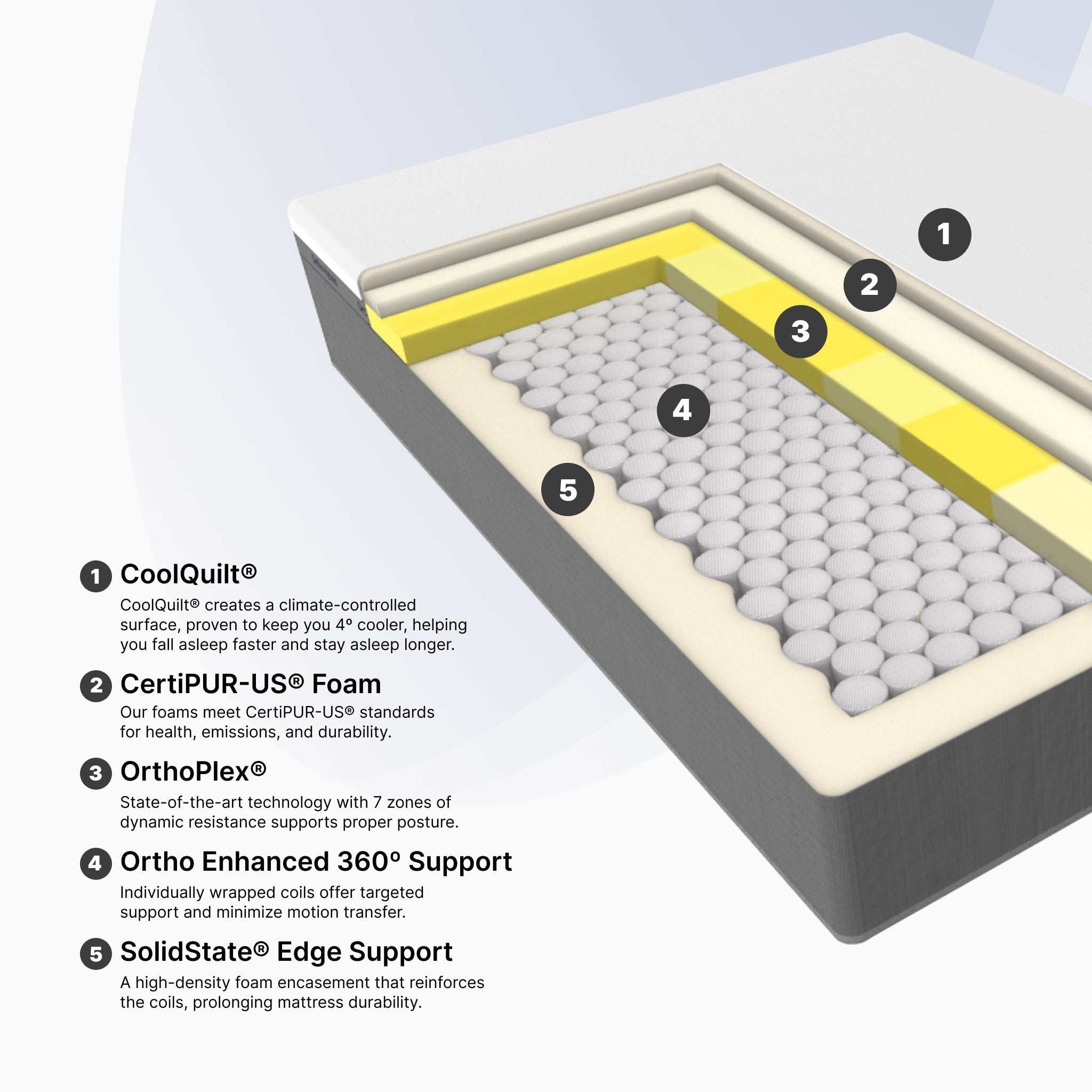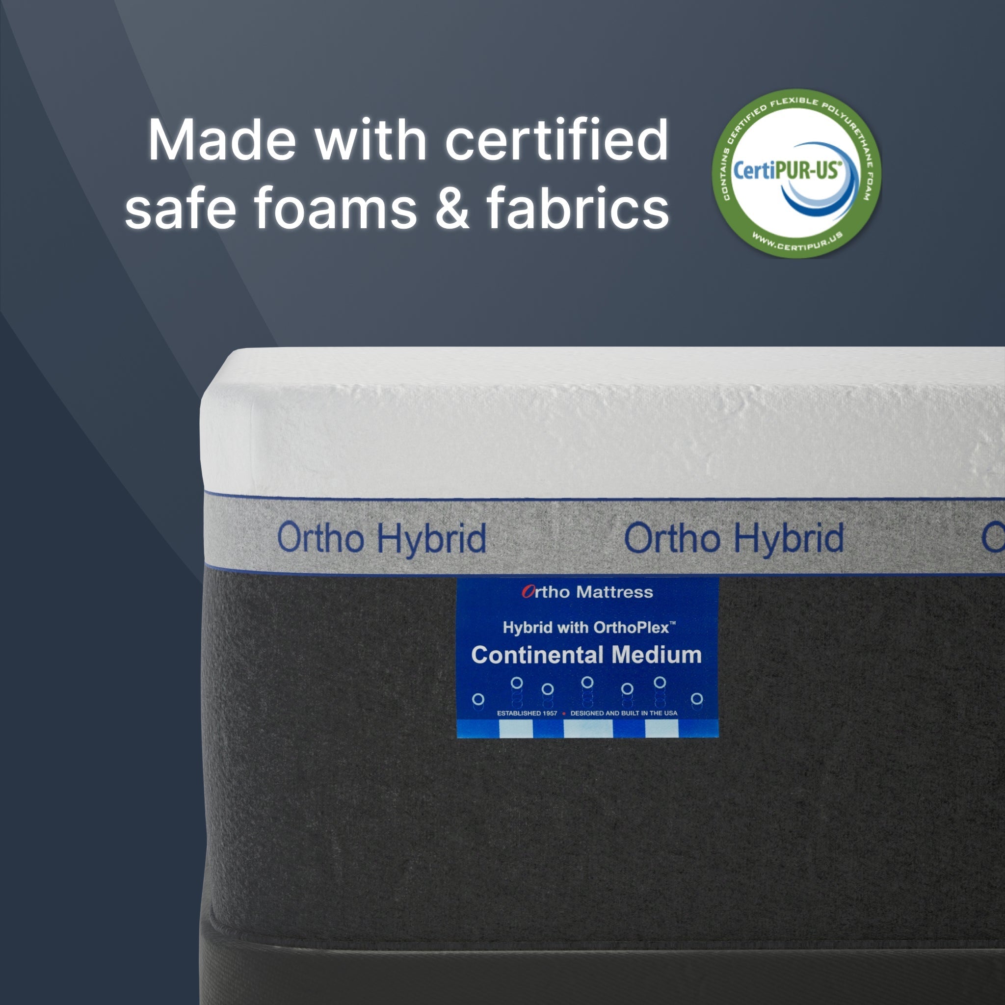 The new Ortho Hybrid Continental II Medium creates a soft, but supportive sleep environment by combining state of the art OrthoPlex® foam, CoolQuilt® technology, and Ortho's Enhanced 360° Support.