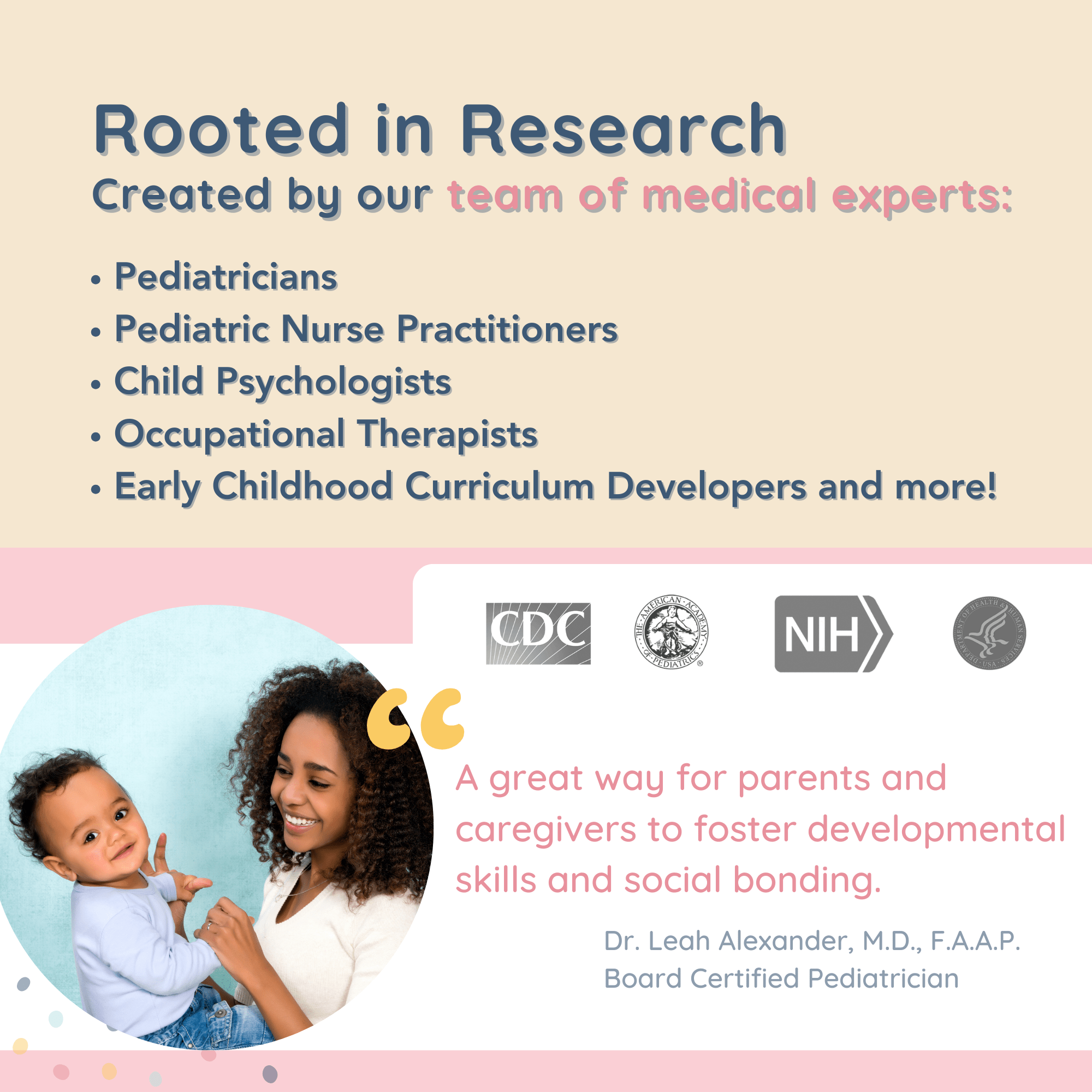 • Research-backed: Rest easy knowing that our medical team of pediatric professionals has carefully created and reviewed the activities designed in our award-winning book for your baby's growth. It's like having our team of pediatricians, nurses, occupational and physical therapists, speech pathologists, child psychologists, early childhood educators, and more - all right in your back pocket!