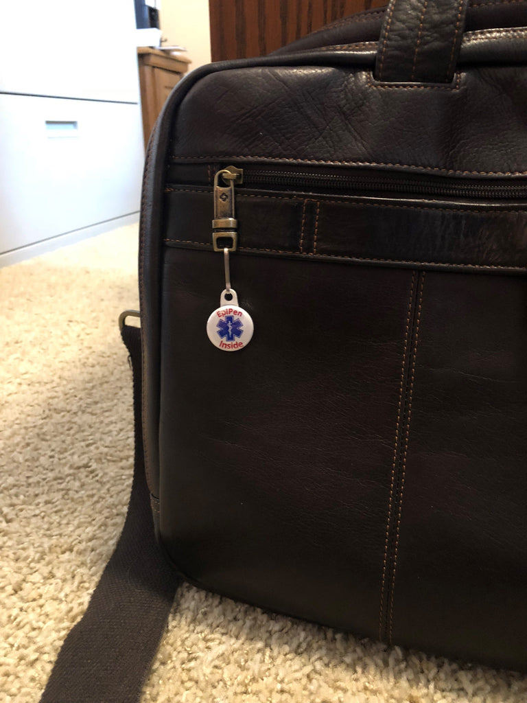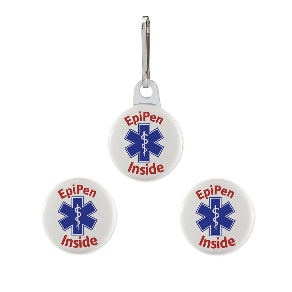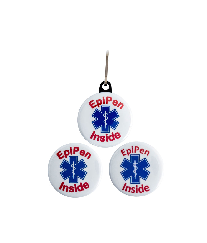 Introducing our Epi Pen Identification Set from Secure ID. We have 2 sets currently available both including pinbacks and clip on zipper pulls. Attach them effortlessly to backpacks, zipper pulls, purses, and more.