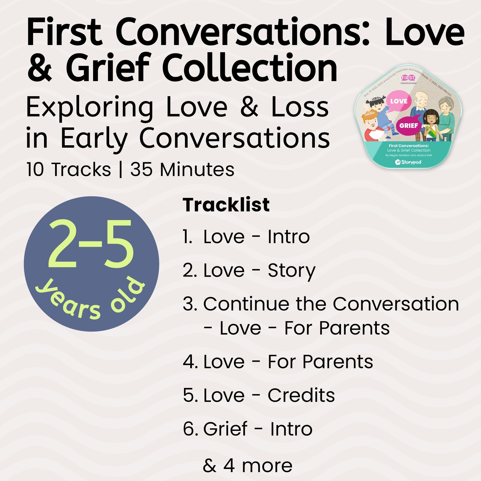 Introduce your child to important topics with the First Conversations: Love & Grief Collection. This audio set includes Goodbye: A First Conversation About Grief and Together: A First Conversation About Love, two stories that gently explore emotions in a way that’s accessible for young children. With clear, simple language, these audiobooks provide a starting point for families to talk about love, relationships, and loss.