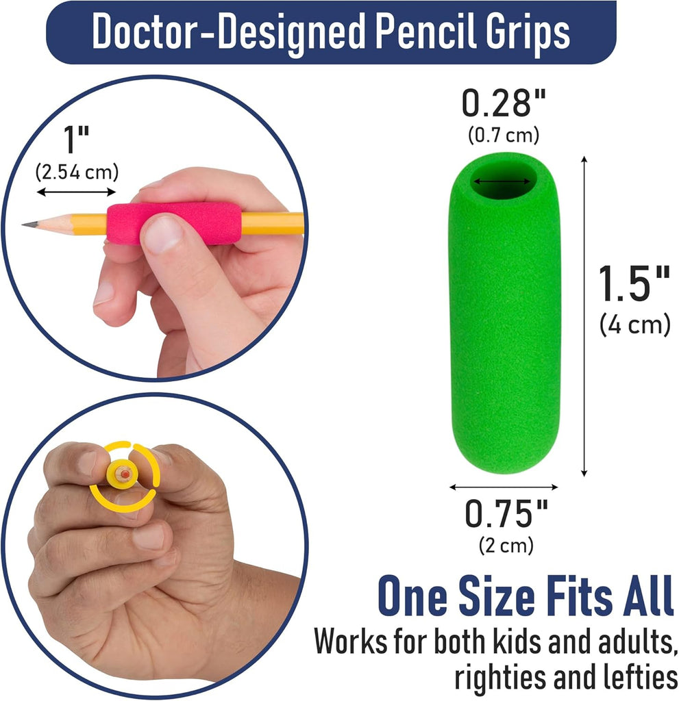 These classic soft foam pencil grips are one of the oldest and most well known grip styles. The Foam Grips come in a vibrant assortment of bright colors: blue, green, purple, red, and yellow.
